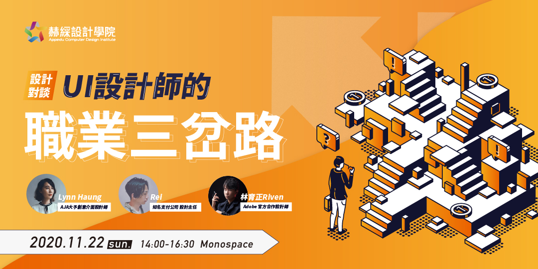 成為設計師之後職涯的Next step-究竟還是設計師?變成主管?或是你可以有不同選擇呢? 解決你的小迷惘!本次赫綵特別邀請到三位,在不同領域產業與公司發展的UI設計師強者:分別是「以接專案類型的Agency公司設計師-黃翎Lynn」、「打造公司數位產品的設計師-Rei」以及「以內容經營為導向的KOL設計師-林育正Riven」,一起來聊聊在工作中其實可以發展出不同面向的職涯路線,不藏私分享個人在業界中的成長經驗及設計思維,開拓你的視野、挖掘自己更多可能性!