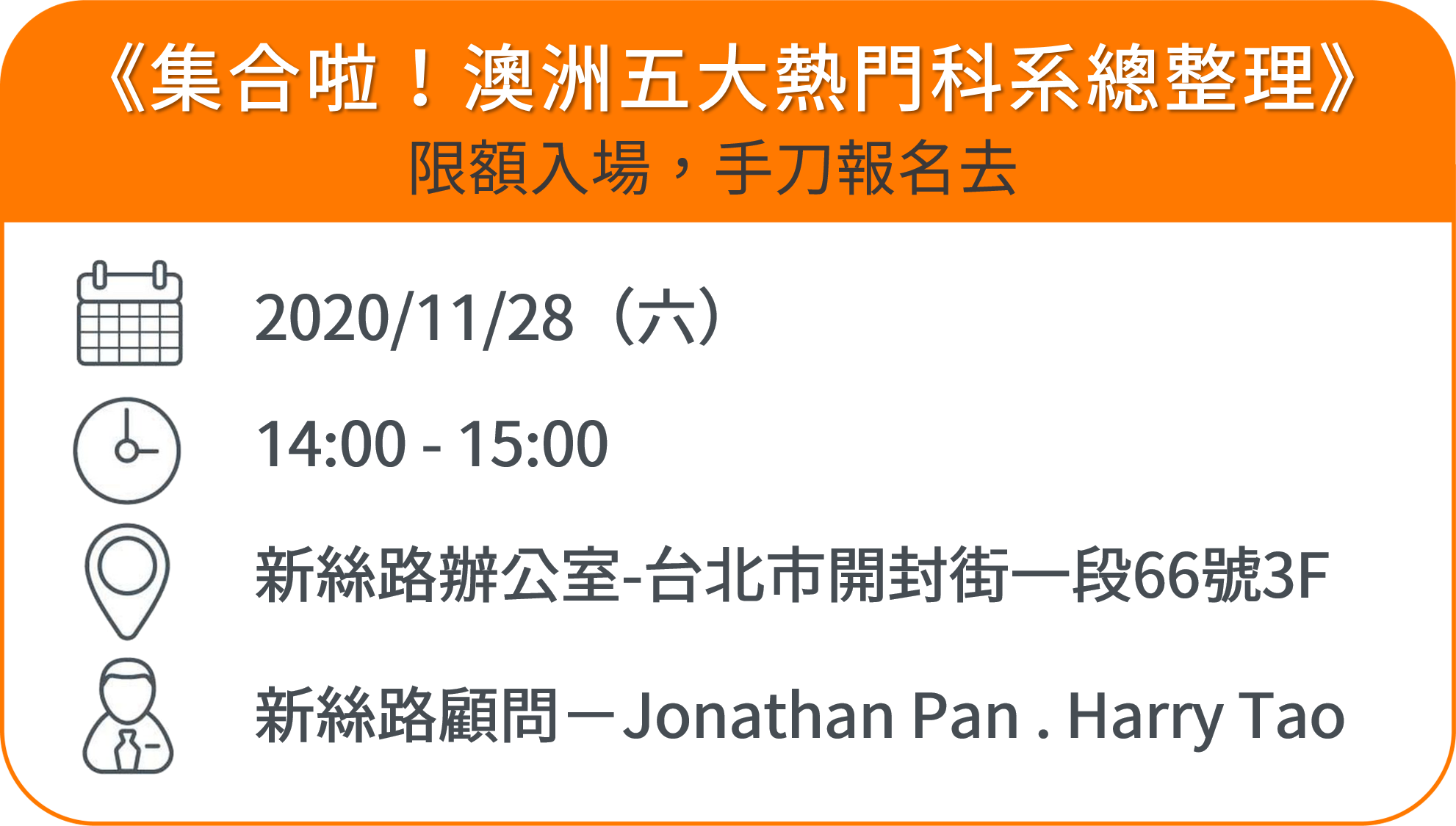 另外本場講座後,將邀請華澳移民顧問-衛斯理與大家做相關的Q&A,歡迎有興趣的你一起討論。