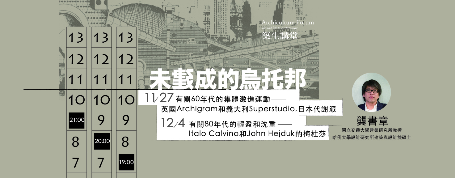 ● 第01堂 11/27(五)19:00-21:00 未建成的烏托邦_01《有關60年代的集體激進運動—英國Archigram。義大利Superstudio。日本代謝派》