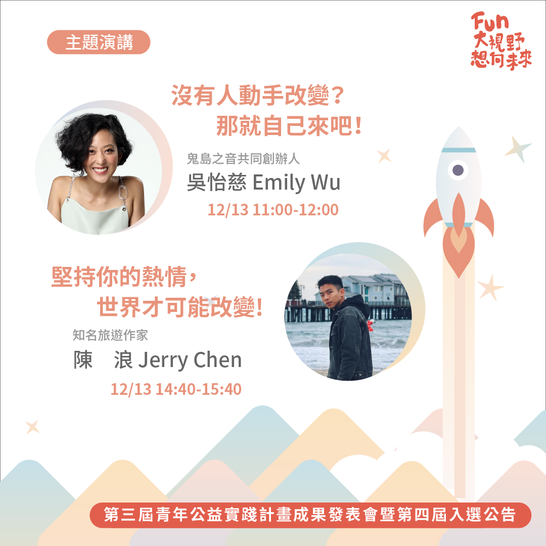 不同領域且複雜的議題不斷出現,但也有越來越多的夥伴站出來,勇敢地面對與解決。而慈濟基金會自2017年起推出「Fun大視野 想向未來」青年創新推動計畫,作為許多年輕社會創新夥伴的後盾,不但提供培力課程模組,並且連結各方人脈網絡與資源,打造全面的公益孵化加速平台。