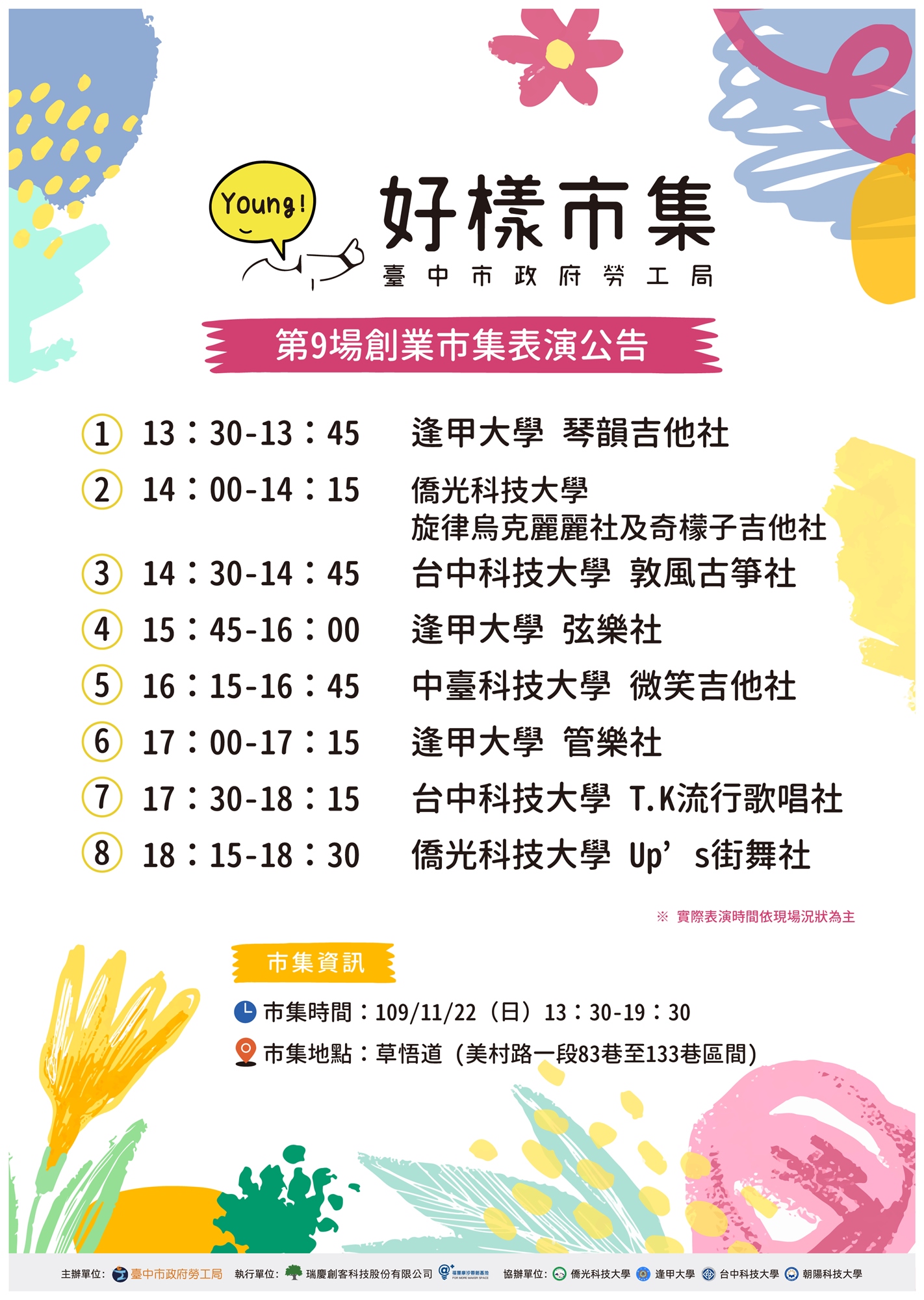 ▲市集介紹:臺中市政府積極推動臺中青年創業發展,為開創豐富的青年創業資源,今年度更積極與臺中大專院校、青創場域合作辦理10場創業市集,提供青年創業發揮舞台,邀請逢甲大學、僑光科技大學、臺中科技大學、朝陽科技大學共同辦理。