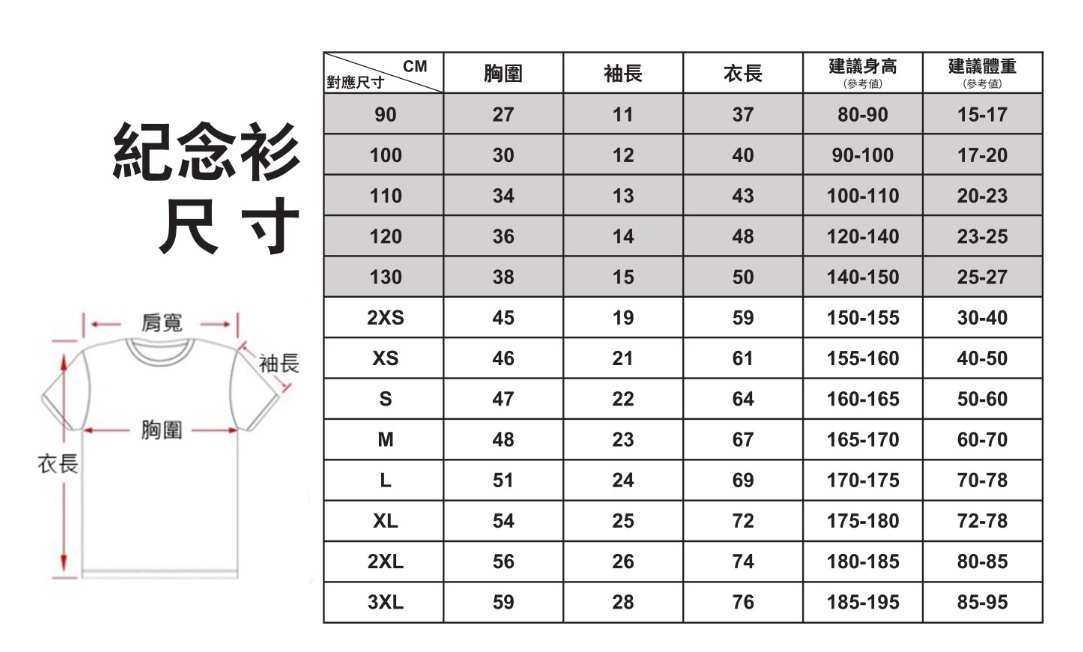 (五) T恤尺寸在報名表中未填者,一律發給L尺寸。