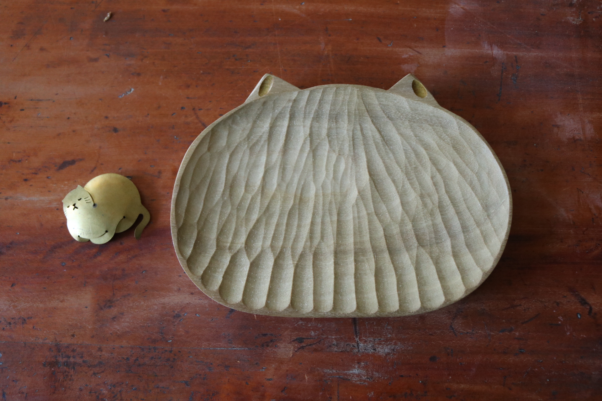 該有眼睛鼻子的地方,我們運用一點點平面浮雕的技法來呈現,想要有圓潤感的貓耳朵與圓滾滾的身體,就使用砂磨,