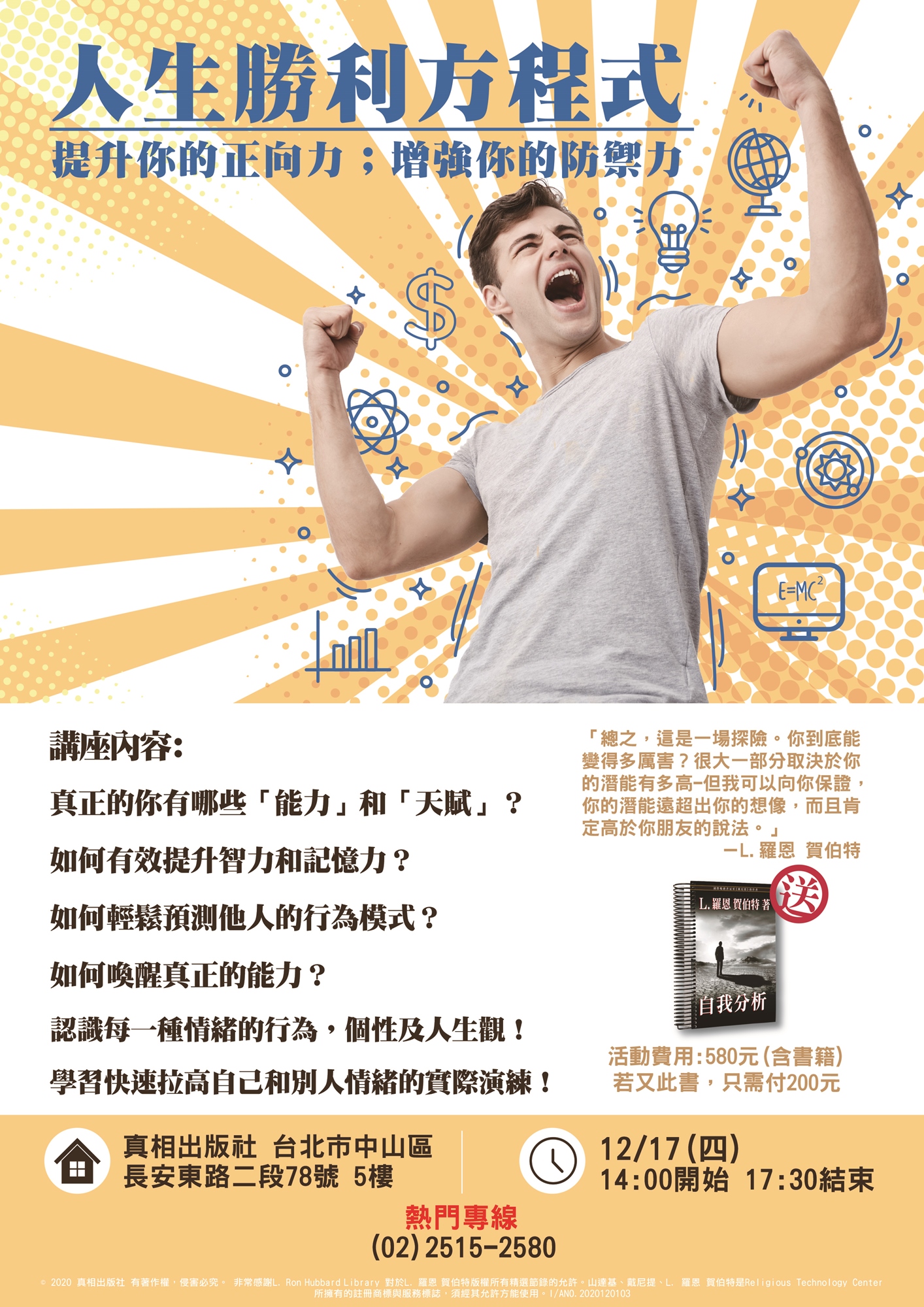 俗話說:「成就心態決定成功人生」藉由此活動你可以增進記憶能力、提升反應速度、以正面態度面對生活、重拾少年的青春熱誠、更認識自己的完整潛能!正面的態度是你開始成功人生的重要基石!