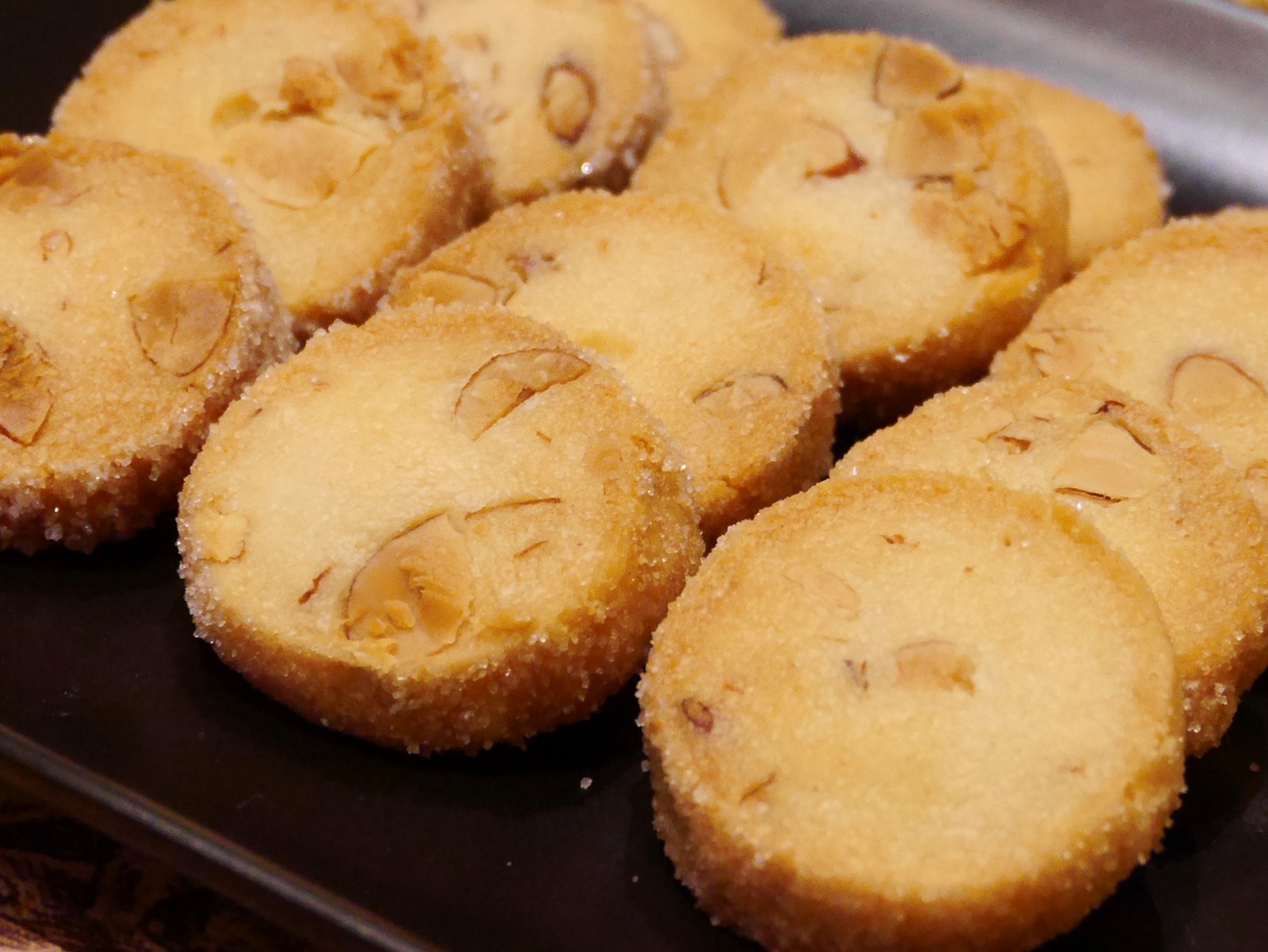 一款含有大量杏仁粉的奶油麵團加上杏仁顆粒,最外圍還要裹上亮晶晶像鑽石般的糖粒。杏仁沙布列餅乾入口除了濃郁的奶香,咀嚼中還散發酥脆的杏仁香氣,外圍的糖粒更添豐富口感。