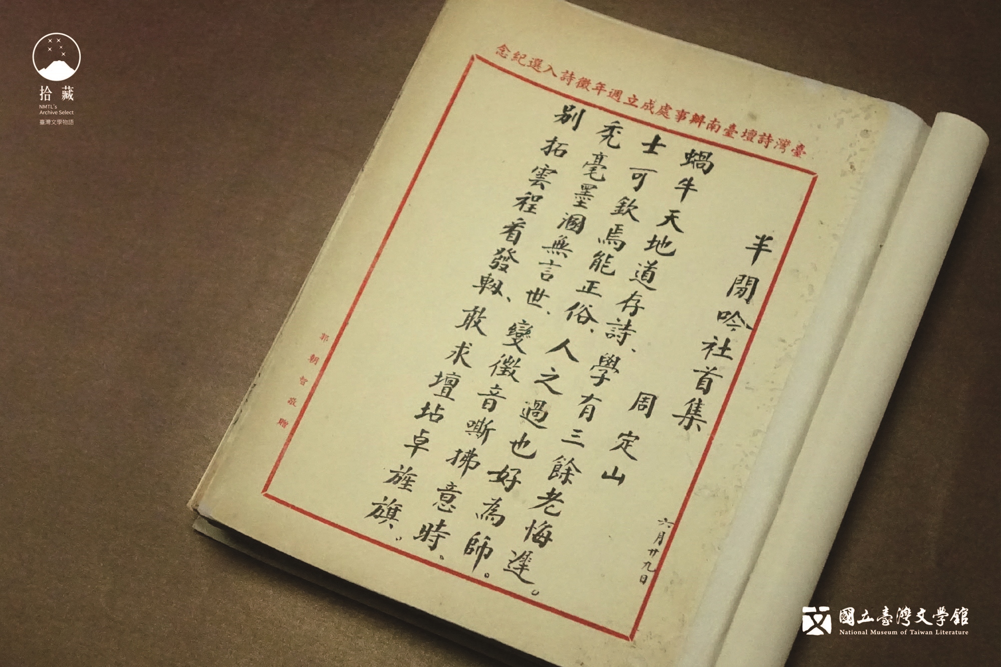 過往由於資料尚未出土的關係,我們對於戰後的周定山與半閒吟社所知甚少。但在2013年,周定山家屬捐贈近1300件文學文物至國立臺灣文學館後,我們開始可以對這段時間的詩人、詩社進行更多的探索,期望透過探索與瞭解,成為你我思考臺灣古典文學的另一種入口。