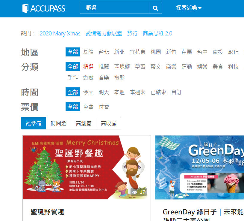 採線上報名的朋友,也可以透過Accupass報名,請先註冊Accupass會員帳號密碼,登入後搜尋野餐,就可以找到我們的活動。