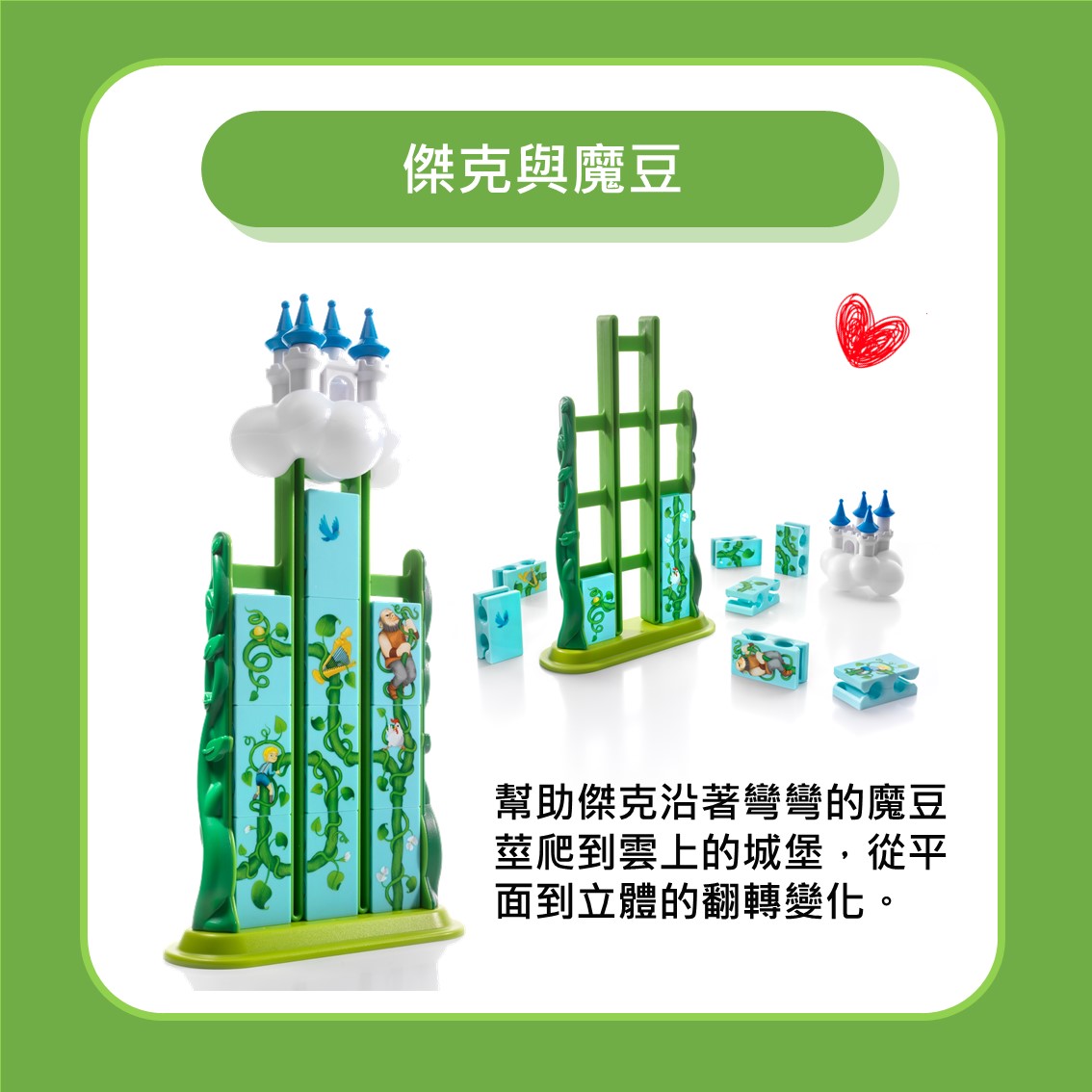 🌱 60個遊戲關卡;分初階-「傑克爬上魔豆莖」與進階「巨人追逐傑克」(難度較高)。