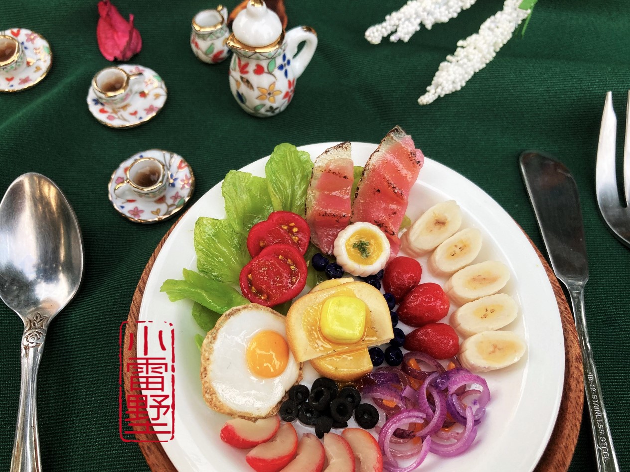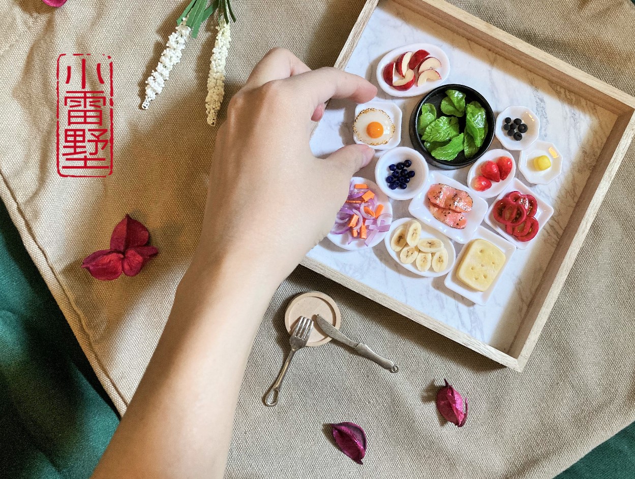 以吐司、培根、煎蛋為主,再加上蘋果、香蕉、洋蔥...等等大量蔬果,我們總共準備了十五件食材來作搭配,兼顧營養、美觀與美味,讓你在備料時輕鬆學習各種仿真食材的基本捏製技巧,再按照自己想要的樣子來自由擺盤。(課程附贈餐盤與鱷魚夾,組裝後,可提醒心愛的家人記得吃早餐)