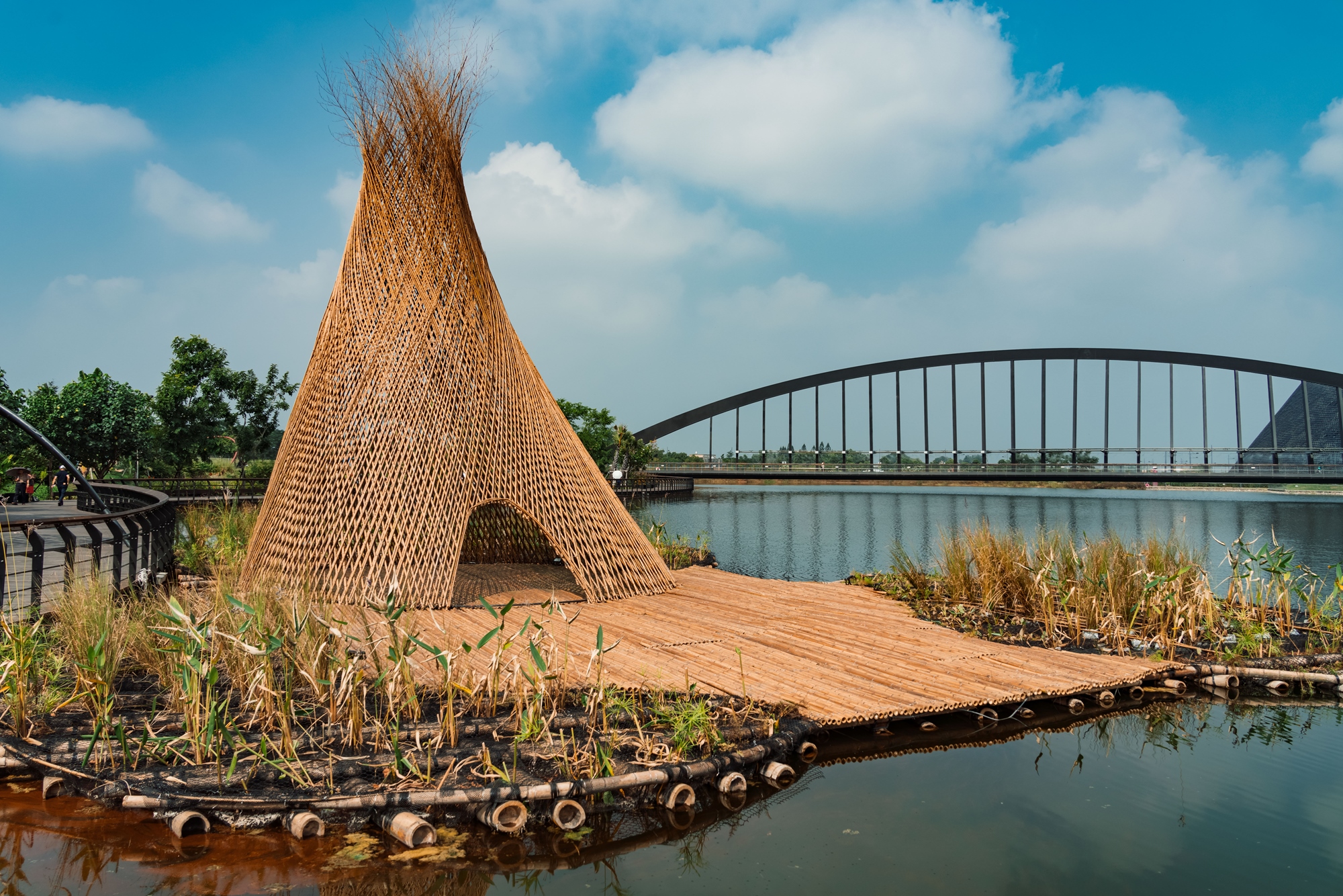 形似竹筏又似魚筌,實非筏亦非筌,倒像安歇水岸的小宅,又如沃野童年的秘密基地。