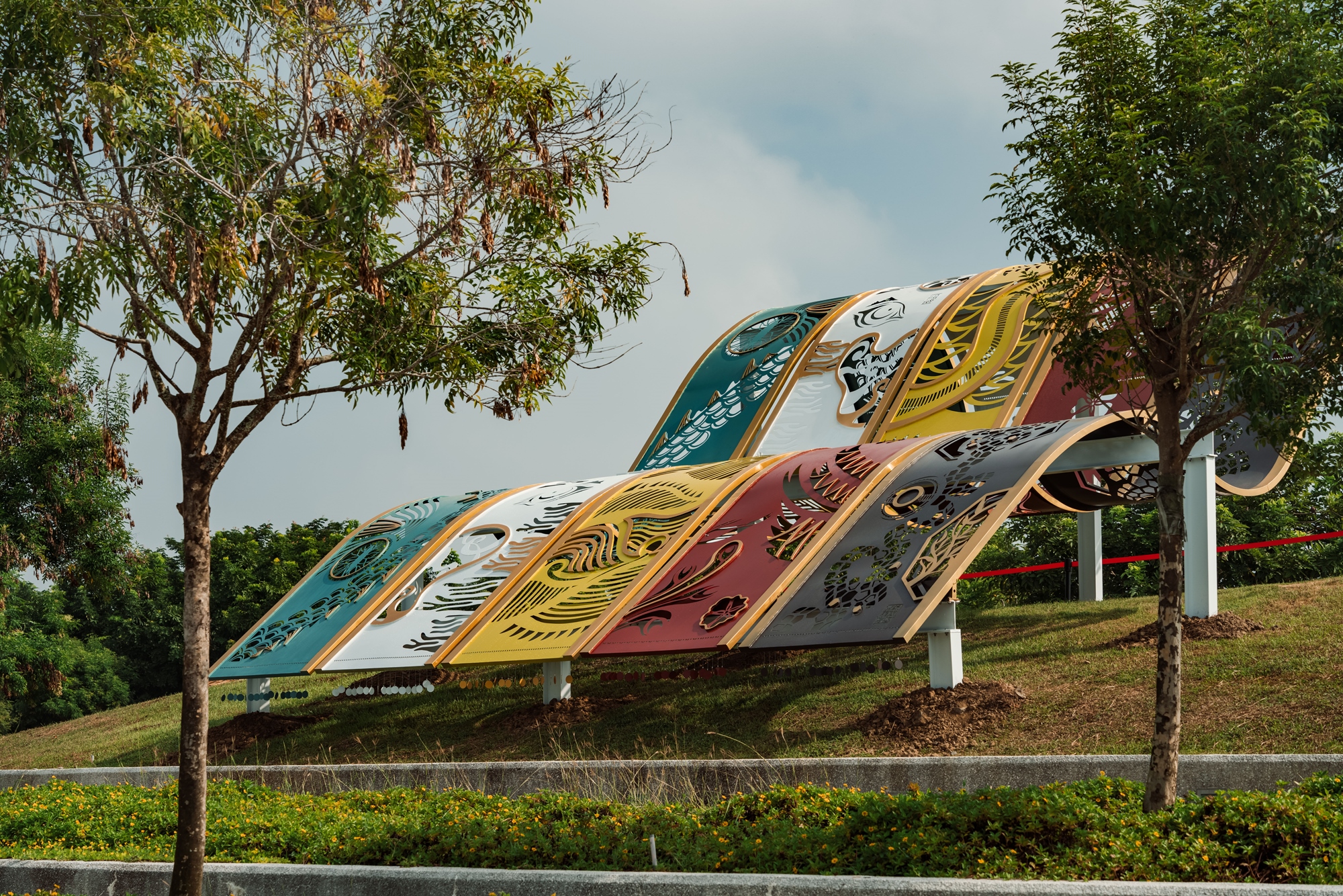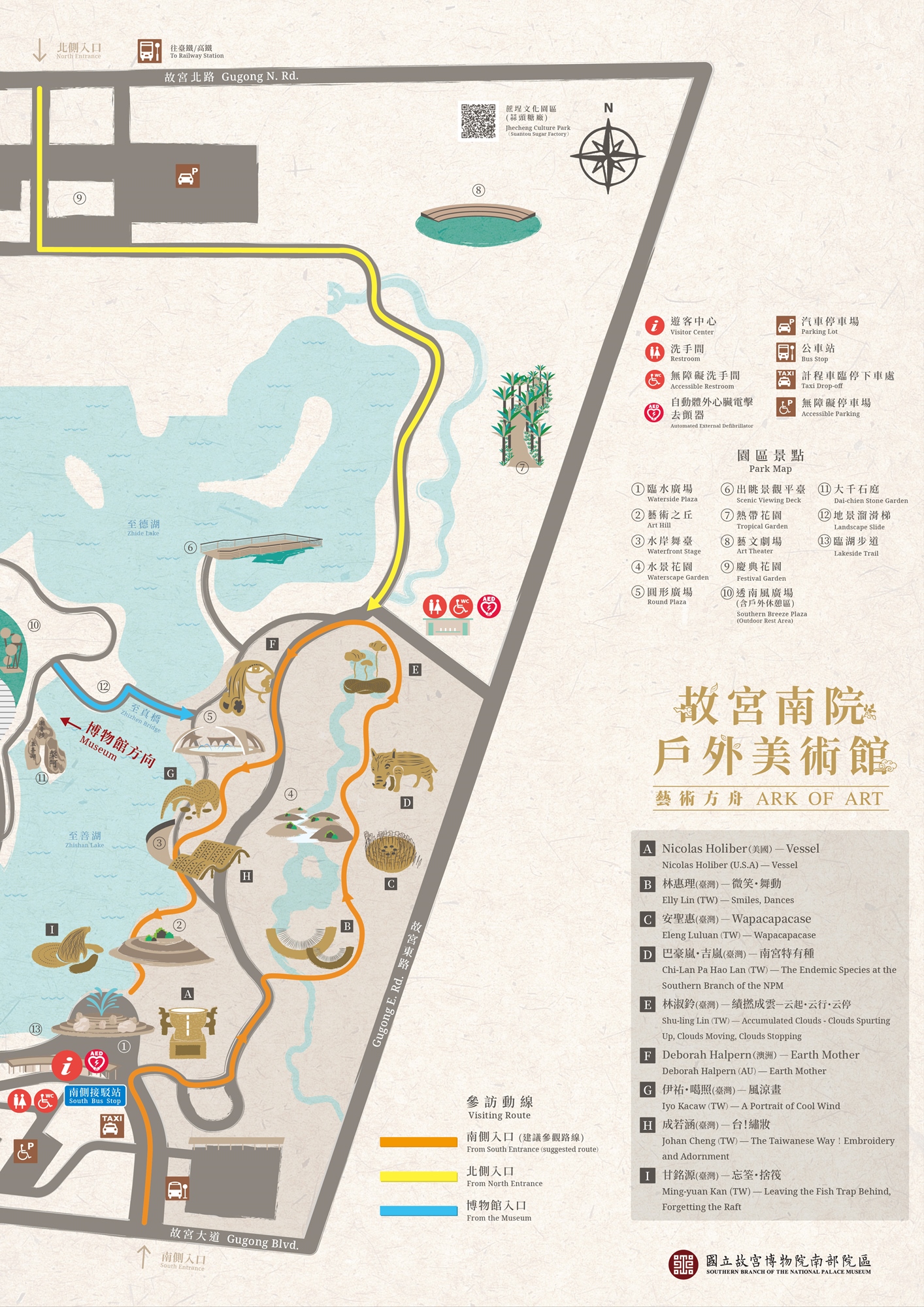 「藝術方舟」於今年11月盛大開幕,在疫情肆虐全球的時期,同時也重挫藝文產業的發展,讓臺灣與各國交流暫緩,故宮南院特別邀請來自美國及澳洲的藝術作品來臺展出,一同在故宮南院遼闊的戶外空間,與臺灣在地的7位藝術家共同為這片土地妝點,誕生了全新的9件戶外裝置藝術,在此,誠摯的邀請您一同欣賞