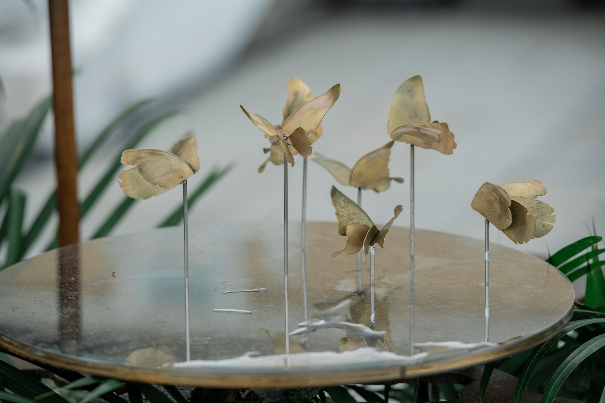 2020故宮藝術節「女子時光」已於故宮戶外平台開展,其中一件參展裝置「湖光山色」由慢鏝金工創辦人謝旻玲進行創作,本次工作坊希望能夠延續裝置藝術的創作精神,廣邀民眾了解藝術家的創作過程。本活動將針對創作主要元件-蝴蝶進行金工手作,製作成 #蝴蝶磁鐵,可裝飾於居家生活空間,活動最後,也將由謝旻玲老師帶領大家參觀展出的藝術裝置作品並進行解說。