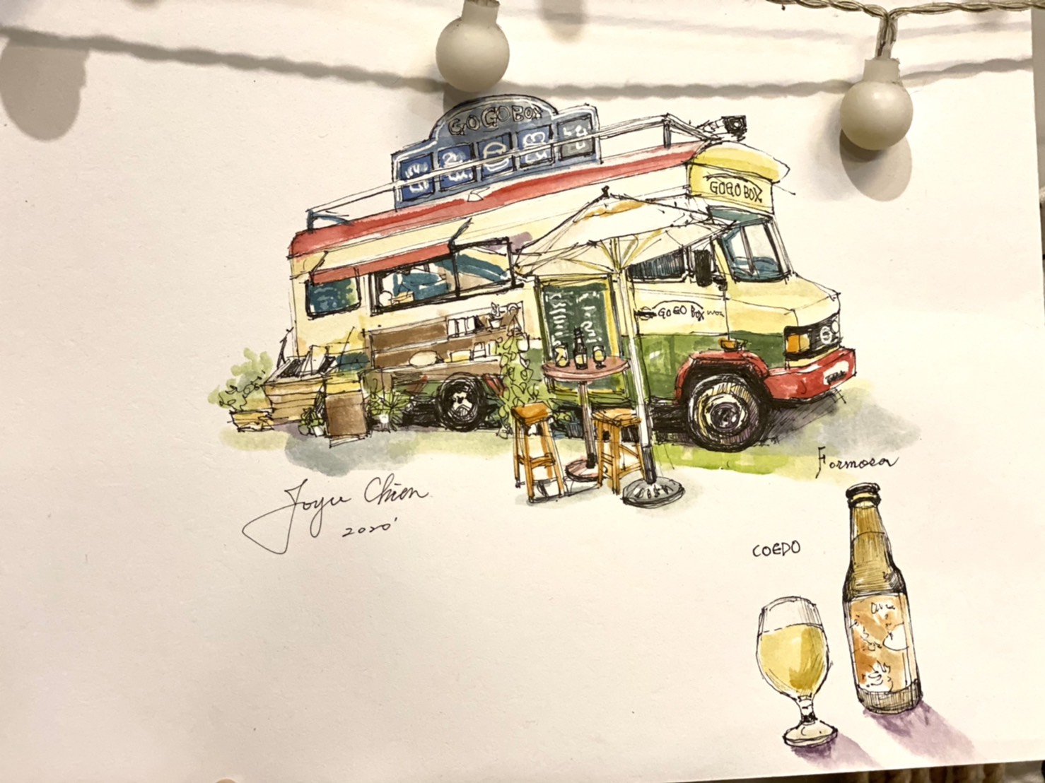在新的一年的第一堂課,二勾小姐請到Joyce老師來 所 SOUL SPACE 現場示範如何繪製出一台可愛又溫暖的餐車。
