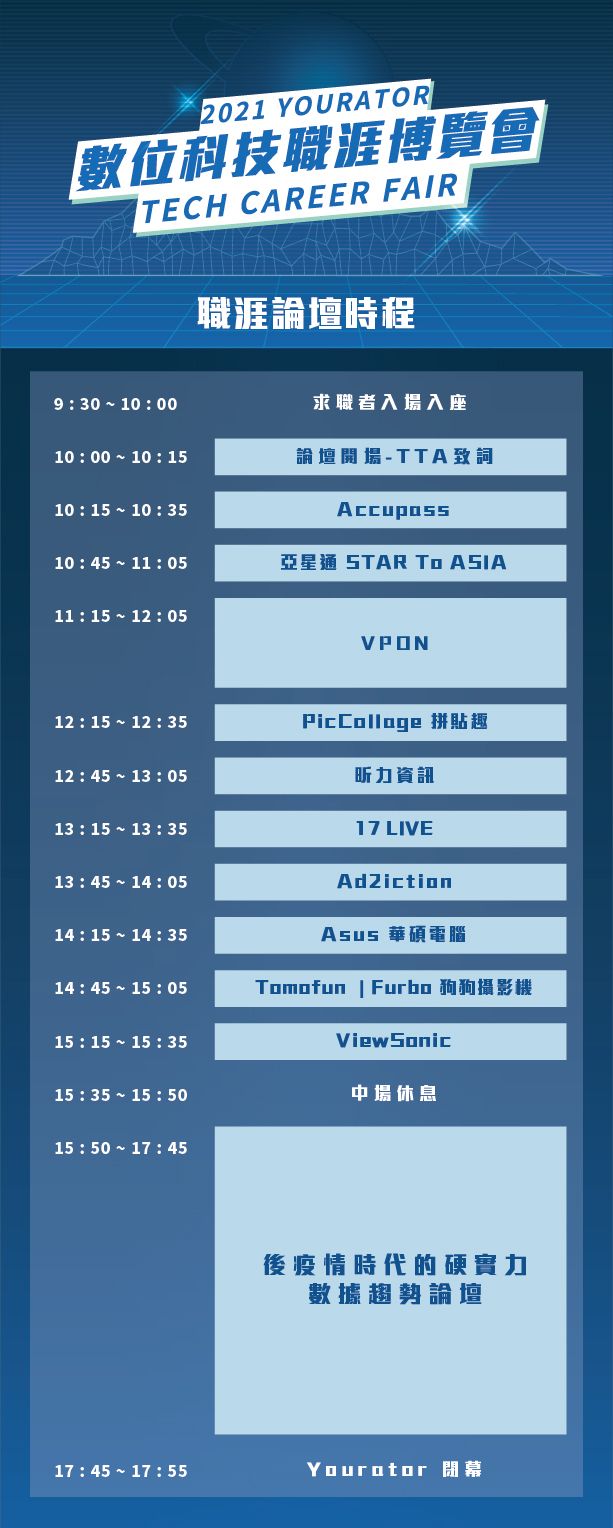 無論是初入職場的新鮮人、在職場累積多年經驗、或想轉職數位產業的人才,都歡迎來到 2021 數位科技職涯博覽會,和 Yourator 一起搭上這波年末轉職熱潮,找到讓自己發光發熱的科技舞台!