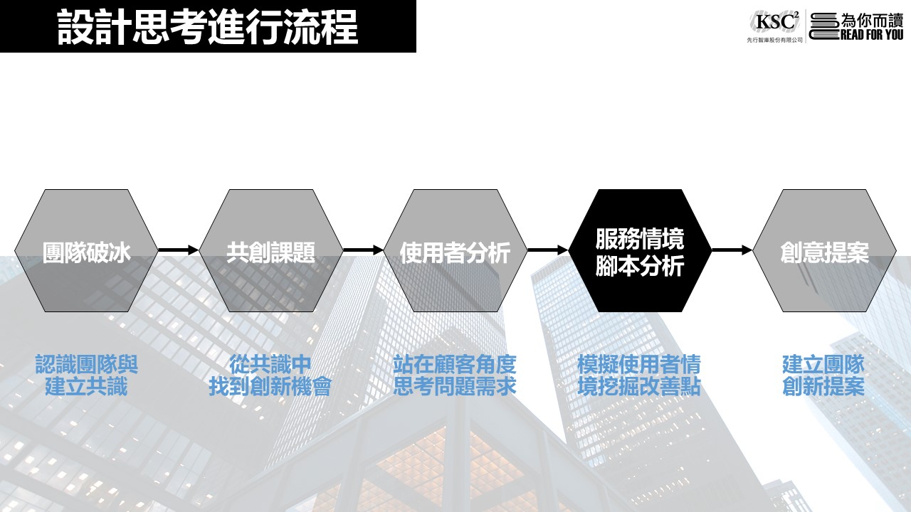 1. 啟動創新挑戰 | 1-1. 設計思考5大基礎概念介紹 1-2. 設計思考案例分享 1-3. 團隊破冰 | 創新教材一份 個案研究 |