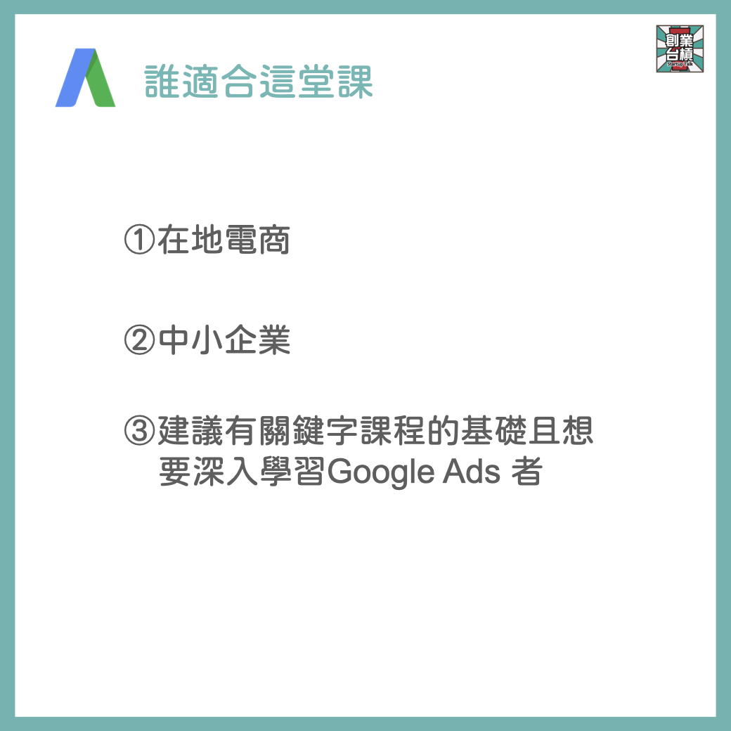 ※若有Google Ads廣告帳戶建議有編輯權限,或是課程當天老師會教學開廣告新帳戶。