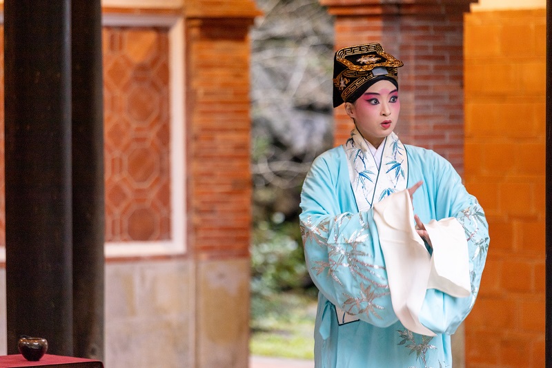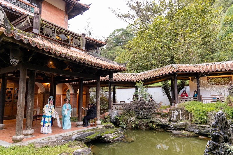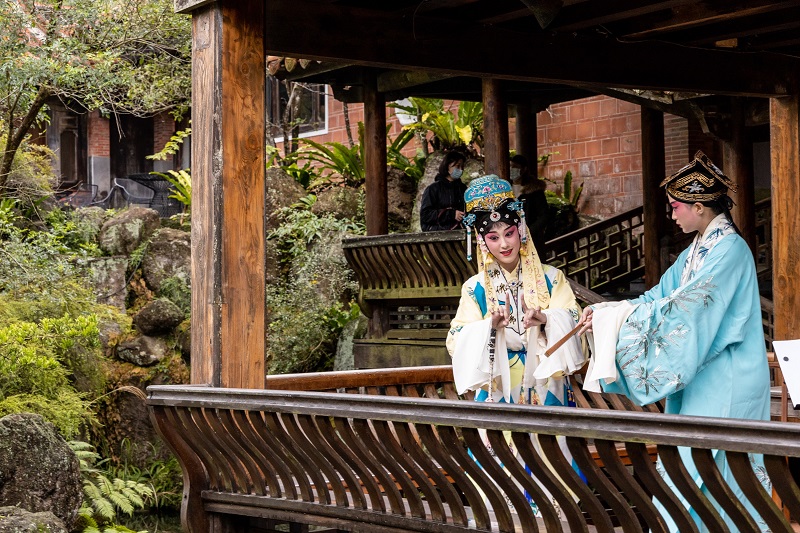 趁天色未暗,在後花園池畔賞一齣崑曲《偷詩》,有如嘴中的紅棗核桃那般甜在心