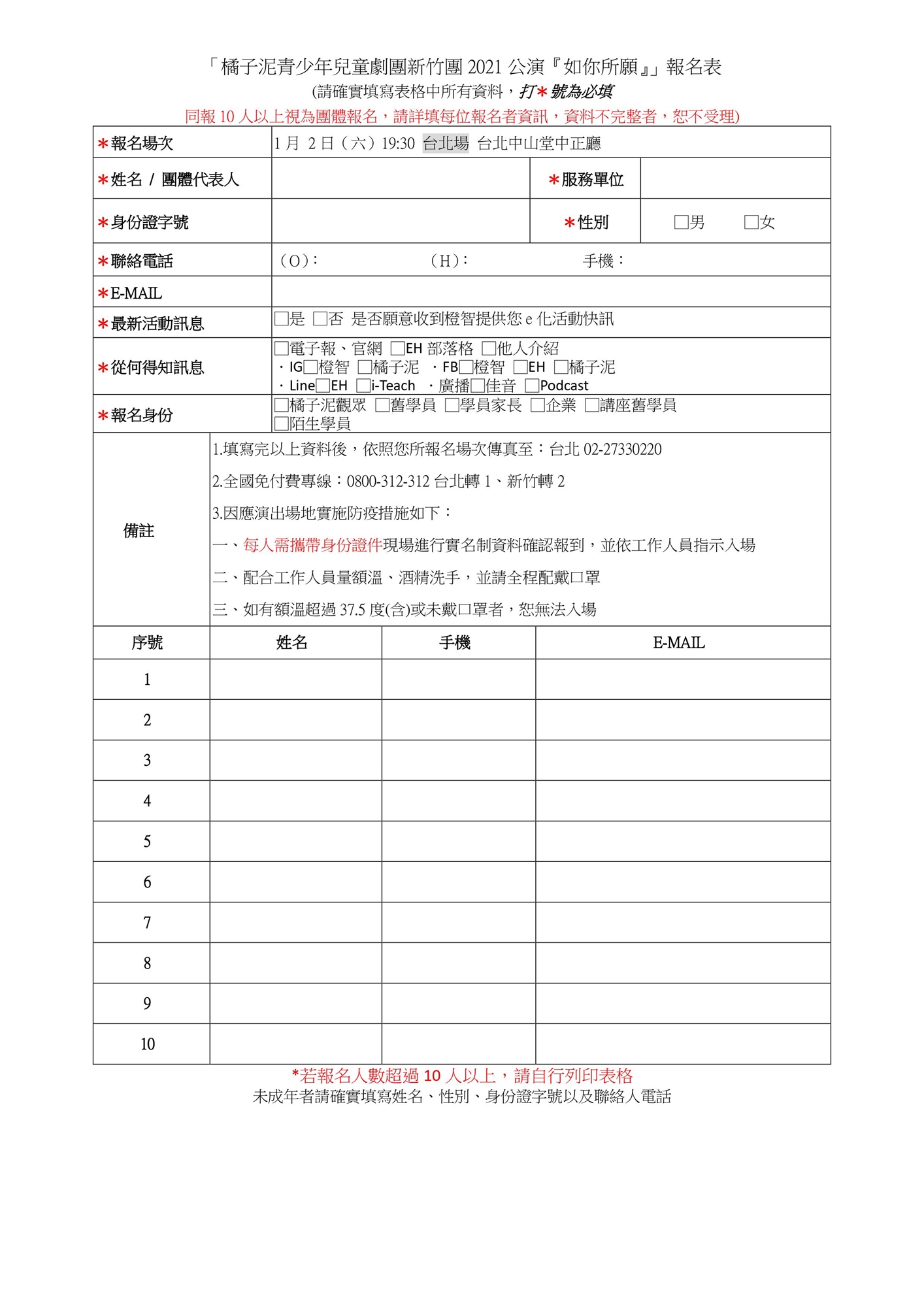 (*備註說明:本場次開放團體報名,10人以上同報務請填妥表單以傳