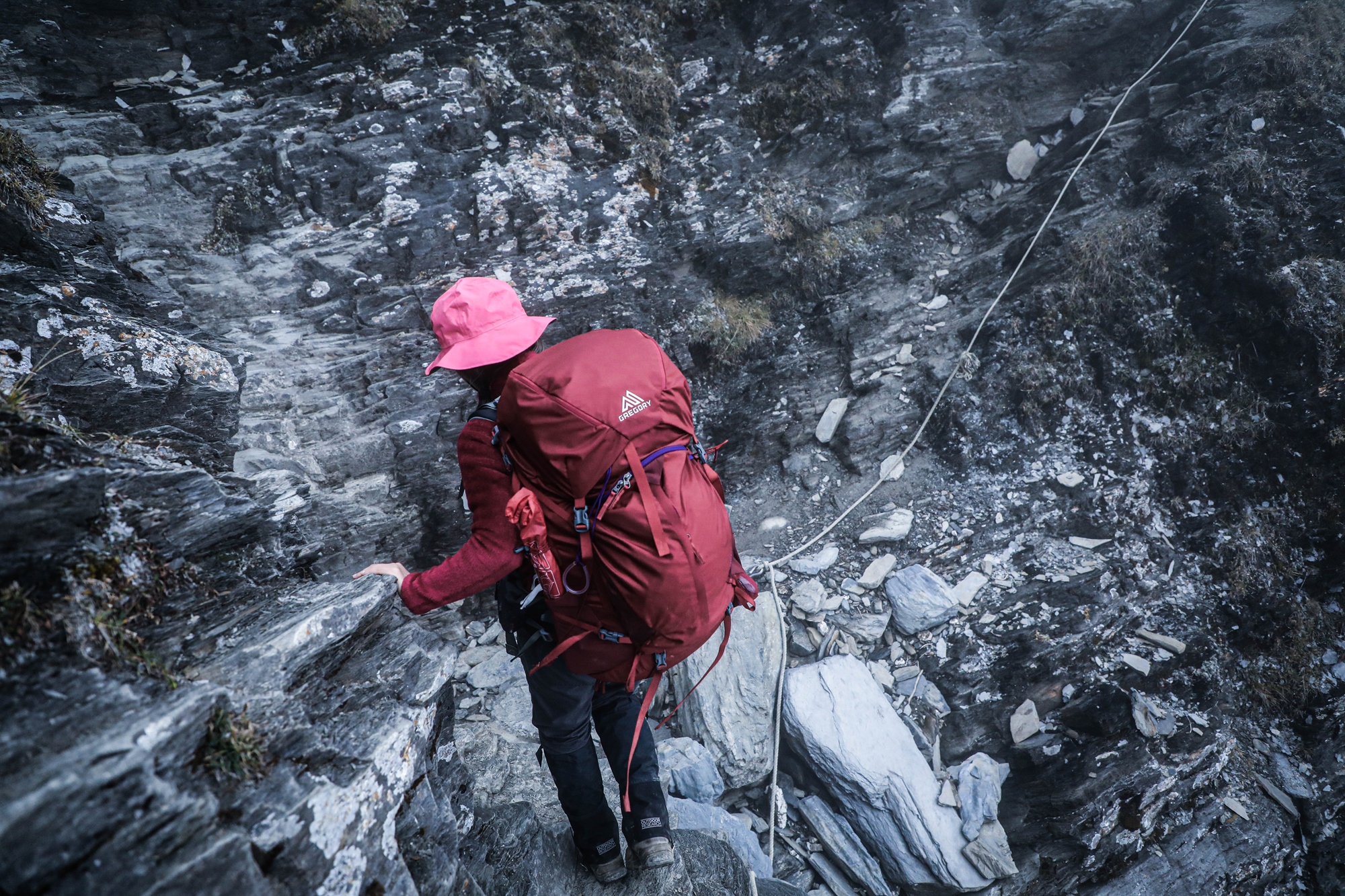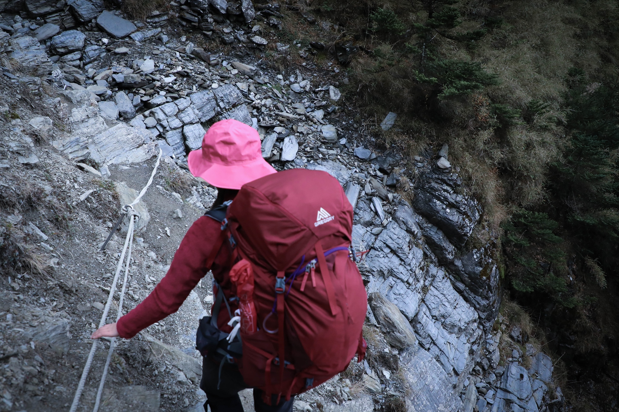 登山時,很常遇到一些需要抓繩子才有辦法過去的地形,陡峭的下坡、光滑的岩面、需要橫渡的崩壁、不好找踩點的大落差,這些地形風險係數較高,幾乎都會架繩、梯子、欄杆等。這些都可以算是廣義的困難地形。