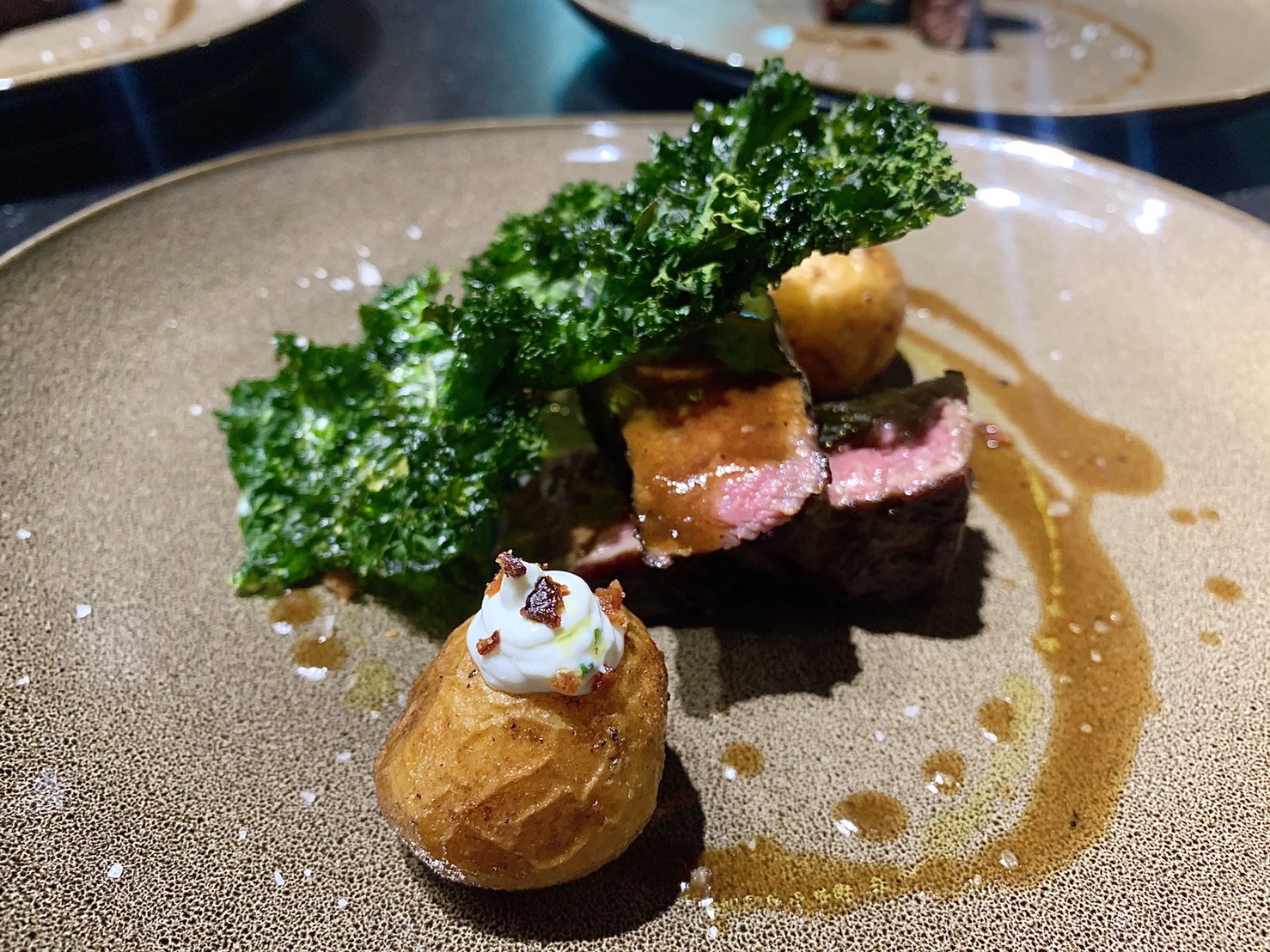 炙烤美國PRIME級 牛小排 迷你馬鈴薯 羽衣甘藍脆片 奇揚地紅酒醬汁