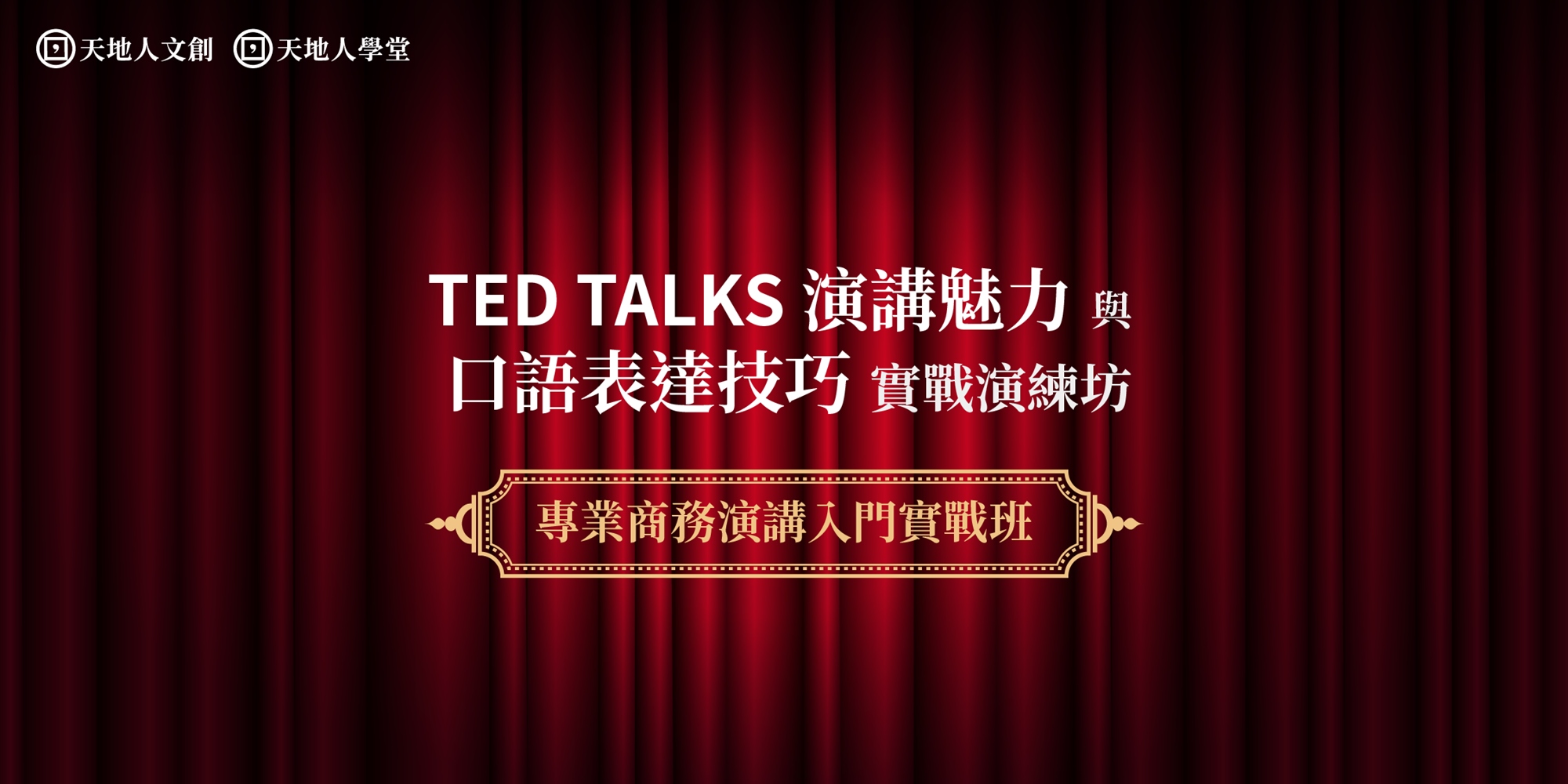 TED TALKS演講是來自世界各國的專業者在不超過十八分鐘的前提下傳遞值得分享的內容與思維,促使觀眾從中獲得知識與共鳴,他們到底使用了哪些技巧?有鑑於此,天地人文創旗下天地人學堂特地規劃出「專業商務演講入門實戰班:TED TALKS演講魅力 與 口語表達技巧實戰演練坊」,邀請到曾擔任保誠人壽行銷長與發言人、康健人壽通路長,並於花旗銀行、美商奇異、美國運通、安聯人壽、信諾集團等外商企業從事行銷與業務近30年,現任104人力銀行職涯諮詢顧問親臨現場,本課程將以多年業界扎實的實戰經驗由淺入深地全面拆解專業演講的六大核心技能:(1)為什麼需要演講力?(2)滿足觀眾所需;(3)完整拆解「演講結構」;(4)演講題材(線上觀摩名人演講);(5)Talk Like TED(TED演講吸睛準則);(6)課堂實務演練&業師點評。透過這門課程,協助你深度瞭解TED TALKS演講與口語表達的實戰技巧與Know-how。