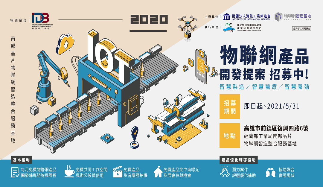 提供想開發IOT產品需求的夥伴,搭配有系統化的輔導資源,定期的媒合、評選、配對、包含IC晶片使用、機電整合、外觀設計、模具打造、小量試產以及通路媒合等內容,不管現在你的產品是構想還是已經有雛型了或是準備量產了,只要你想產品變得更好,更有價值嗎?