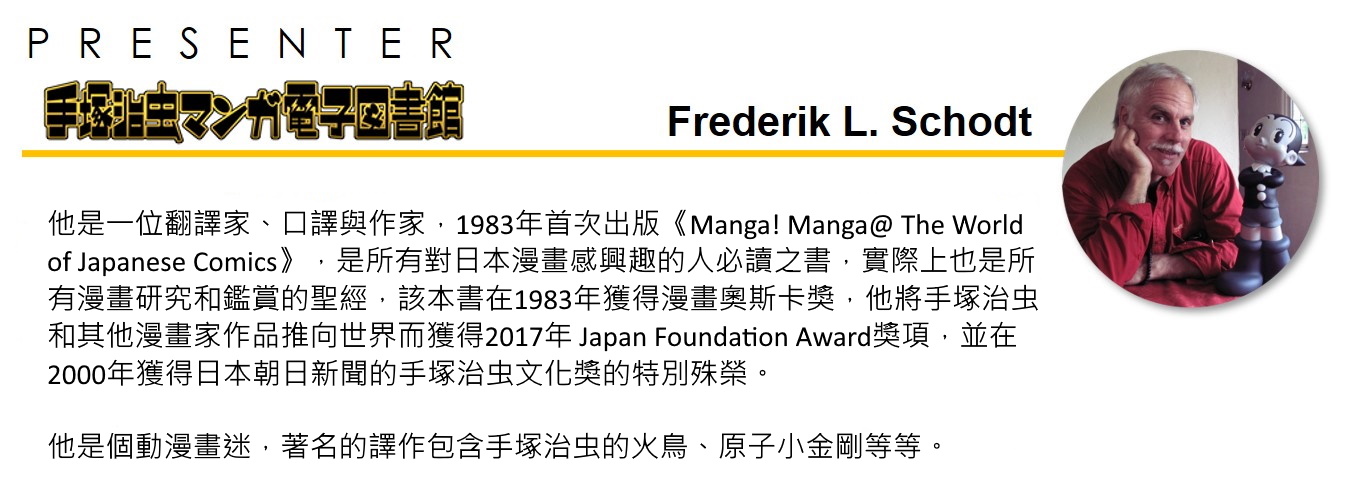 Session 1- Mr. Osamu Tezuka’s Story 漫畫之神手塚治虫的故事,由 Mr. Frederik L. Schodt 主講
