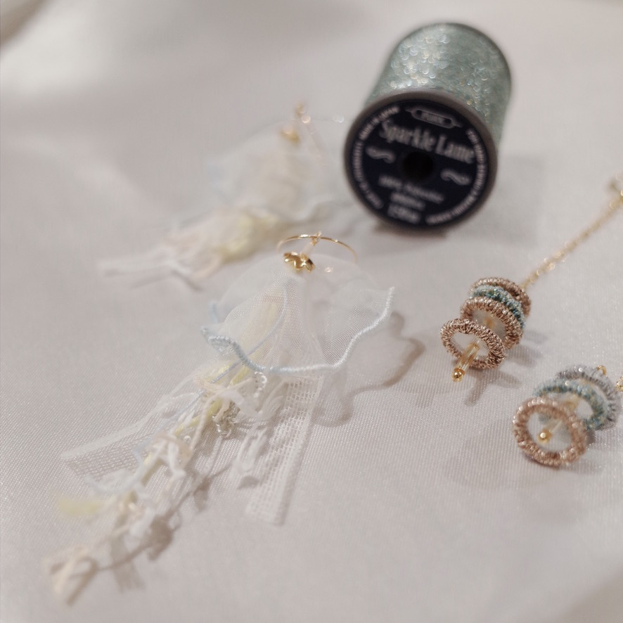 - 以及關於歐根紗刺繡與製作成飾品耳環的小訣竅