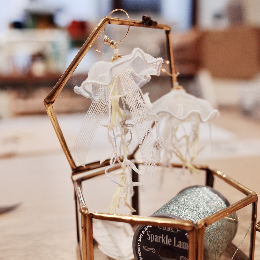 ▍製作物件 _ 透明系 水母耳飾 (耳針 / 夾式)