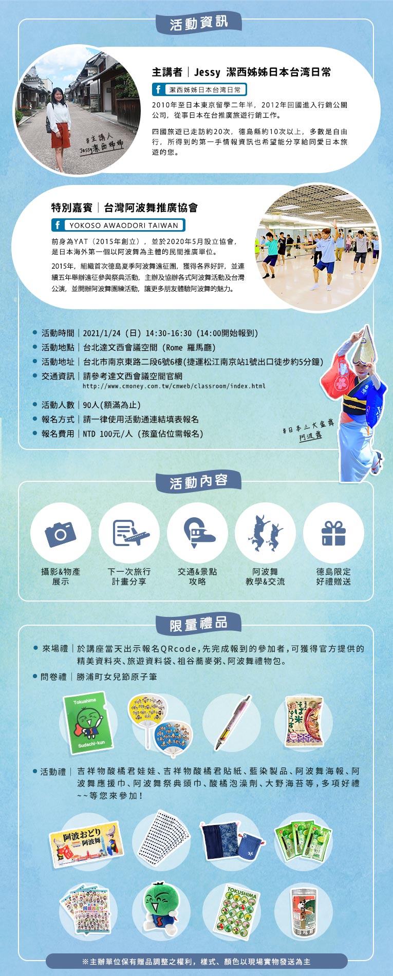 【TOKUSHIMA!再次踏上四國德島縣】旅行講座暨阿波舞教室