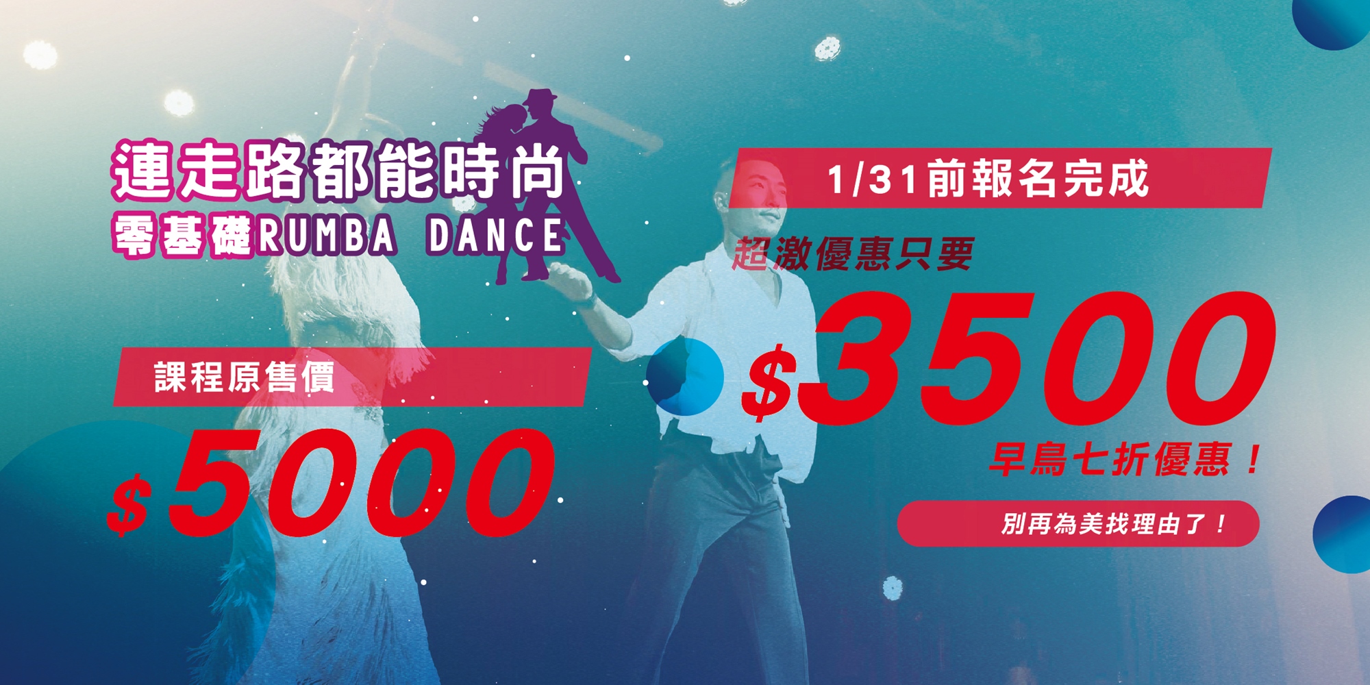 倫巴舞是非常浪漫的舞科,講求身體姿態的婀娜,也被稱作愛情之舞,動作著重在臀部擺動,想要隨著動人的倫巴音樂舞出自已最美的樣子、或是想嘗試看看國標舞的朋友快來從最基礎的Rumba開始!