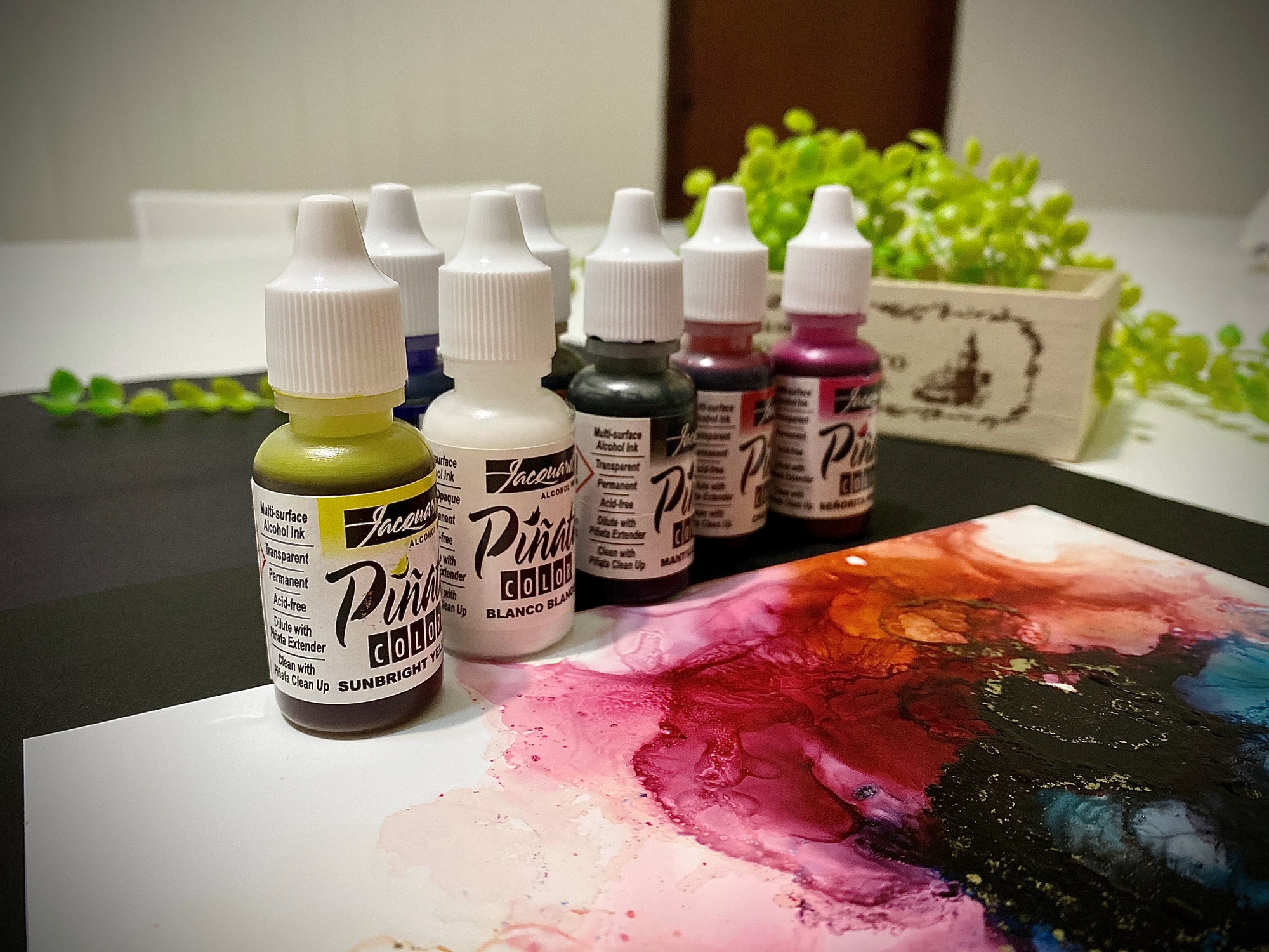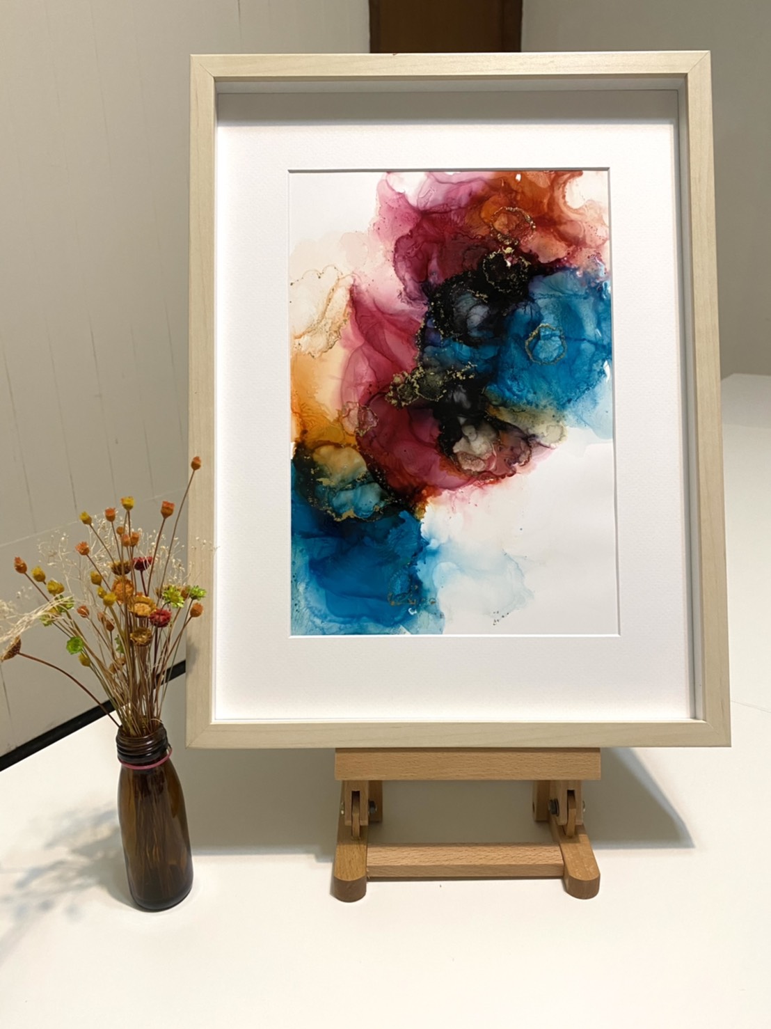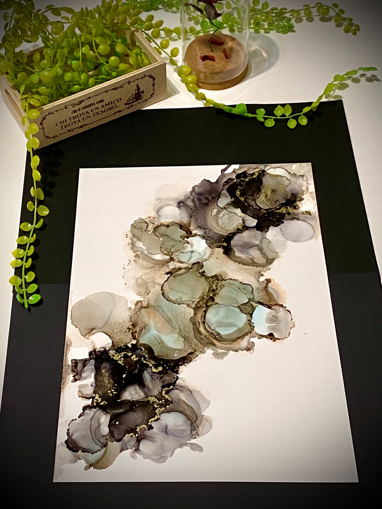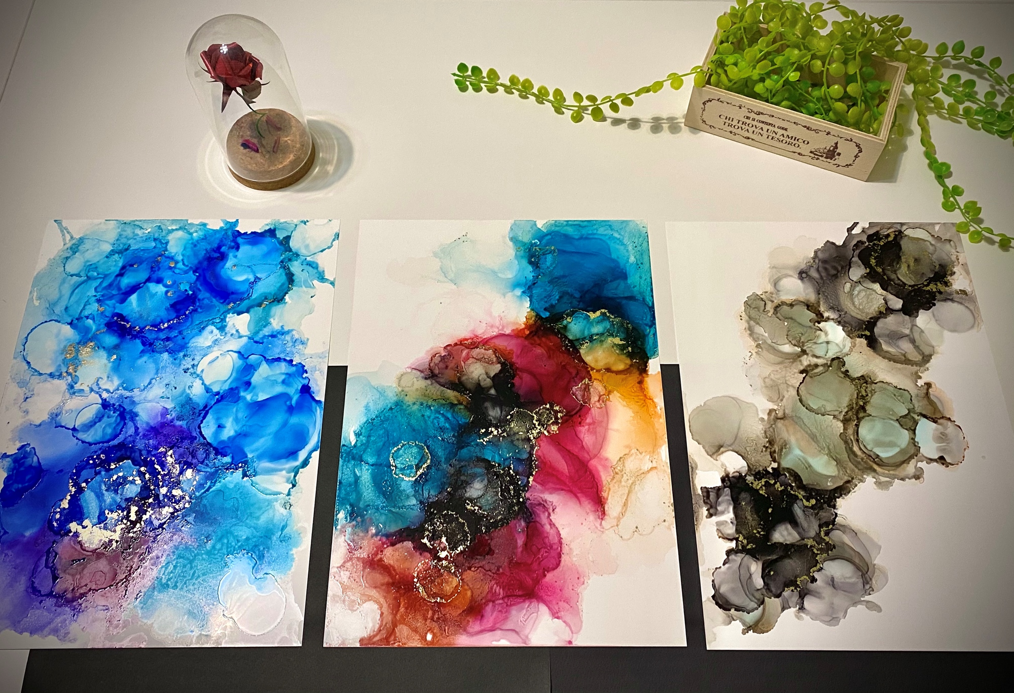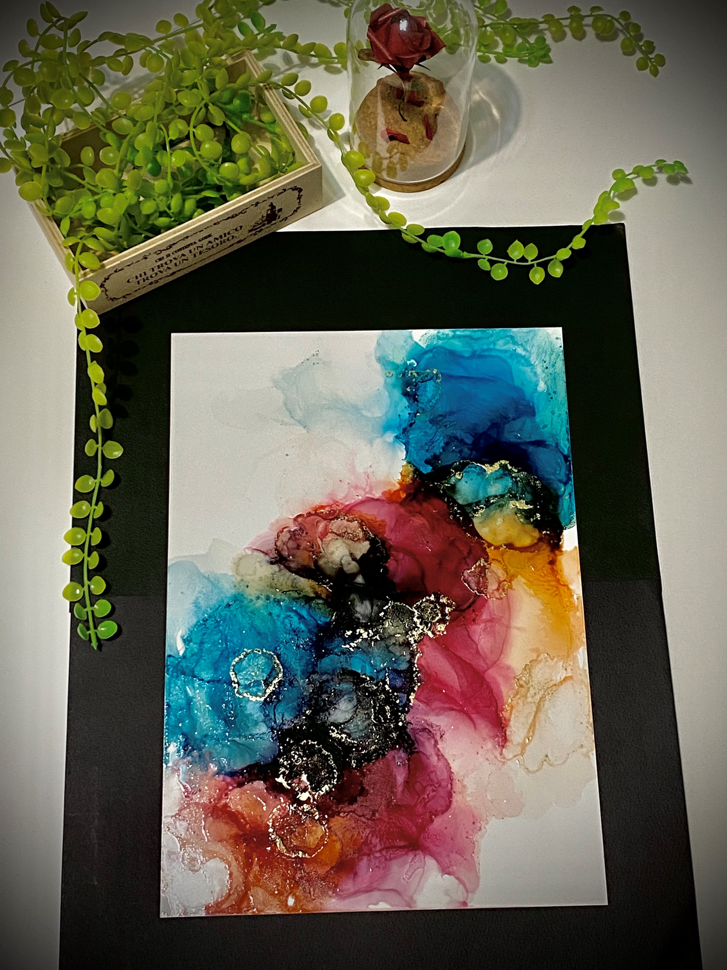 夢幻的色彩,在紙張上自然的暈染、擴散交疊,酒精墨水畫擁有水彩的渲染特性,卻也更多了自在的寫意!