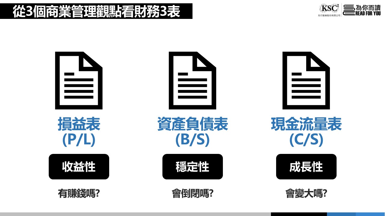 1. 如何從財務3表找出機會與問題 | 1-1. 損益表 (Profit and Loss Statement,簡稱P/L) 1-2. 資產負債表 (Balance Sheet,簡稱B/S) 1-3. 現金流量表 (Cash Flow Statement,簡稱C/S) | 0.5小時 |