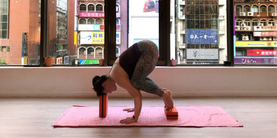 1. 烏鴉式算是有點難度的瑜伽動作,在順利起飛前,可藉由瑜伽磚輔助,找到穩定及平衡的力量。