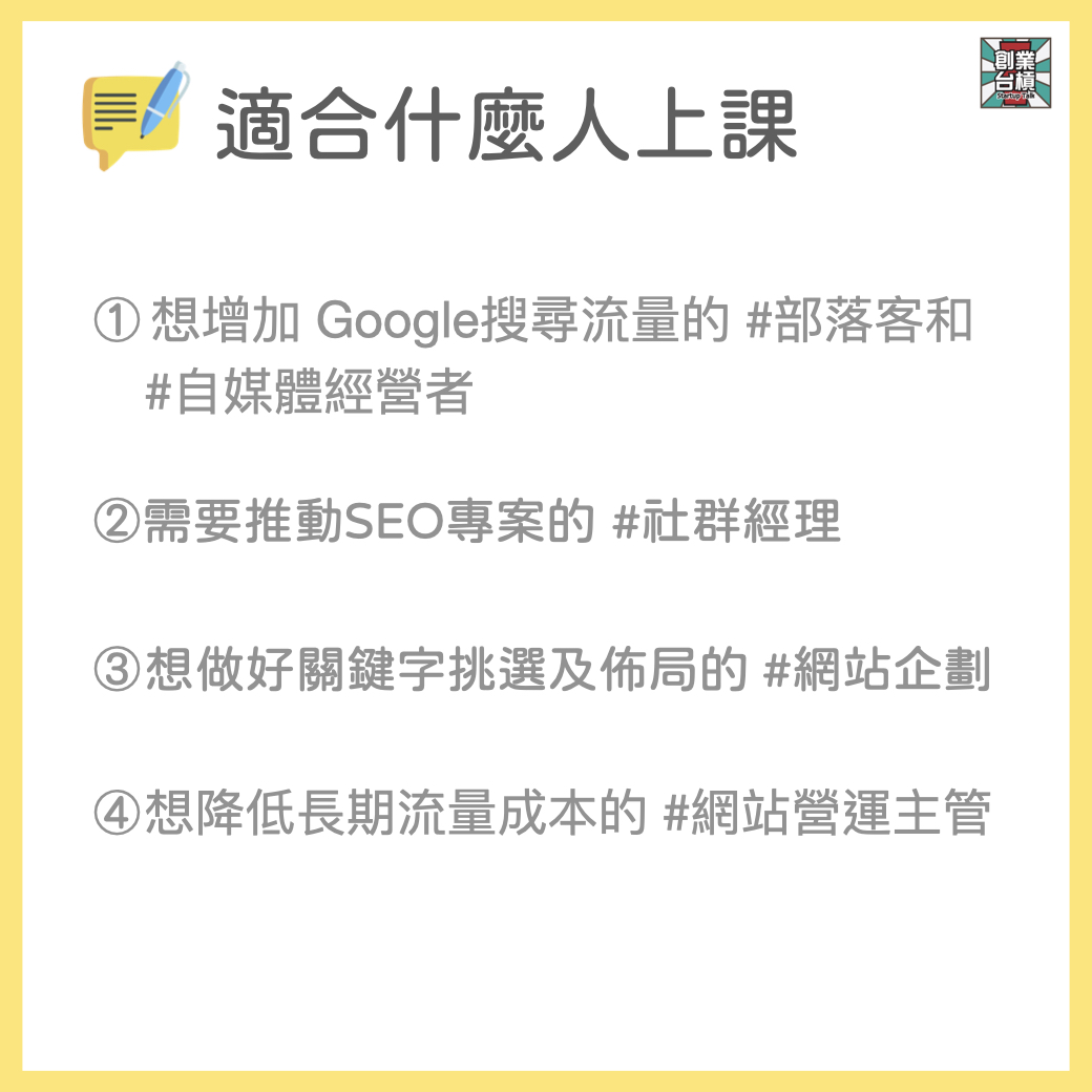 |自媒體必學!自媒體經營者內容行銷術與SEO策略實戰班|台槓私塾 3/4(四)