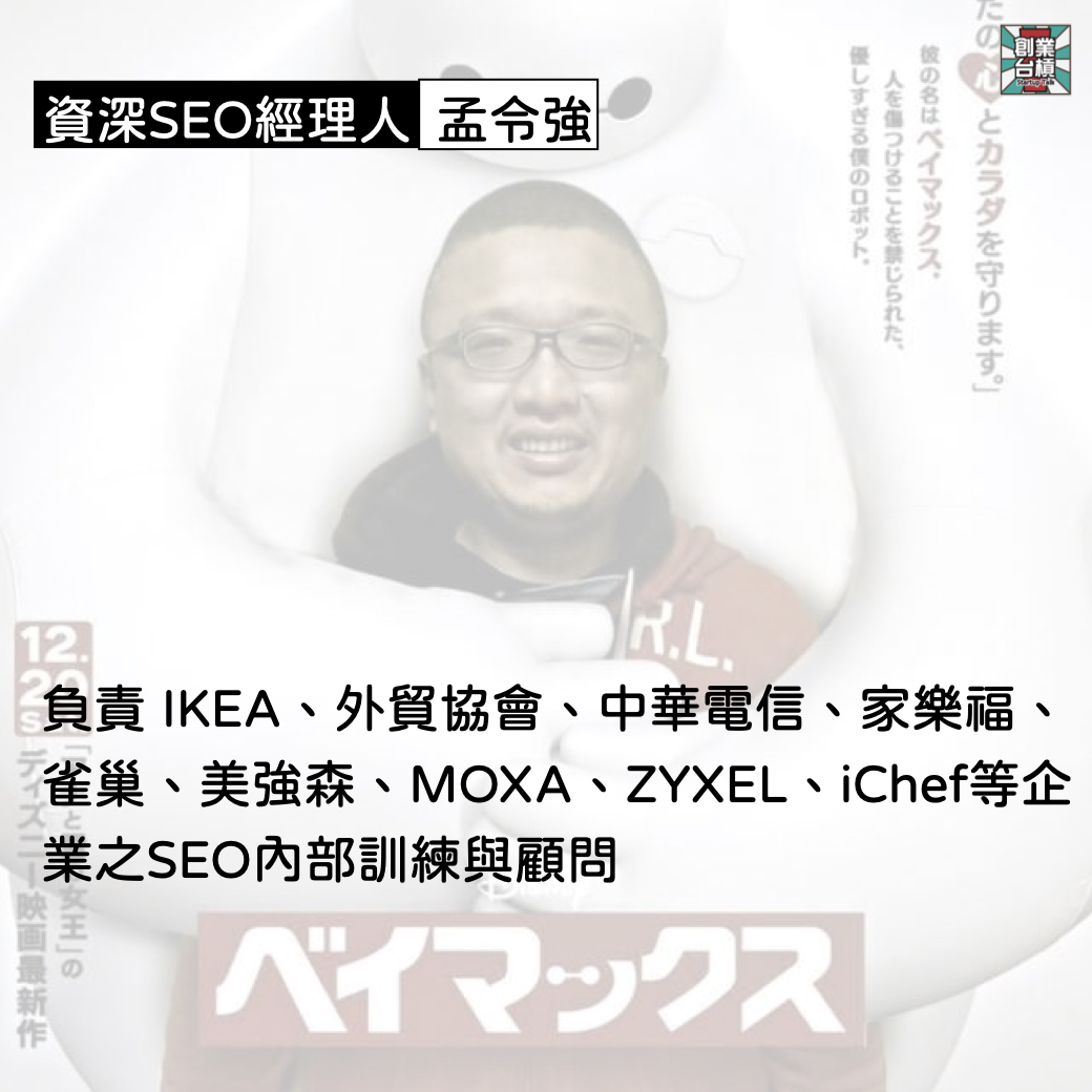 亦曾負責 IKEA、外貿協會、中華電信、家樂福、雀巢、美強森、MOXA、ZYXEL、iChef等企業之SEO內部訓練與顧問。