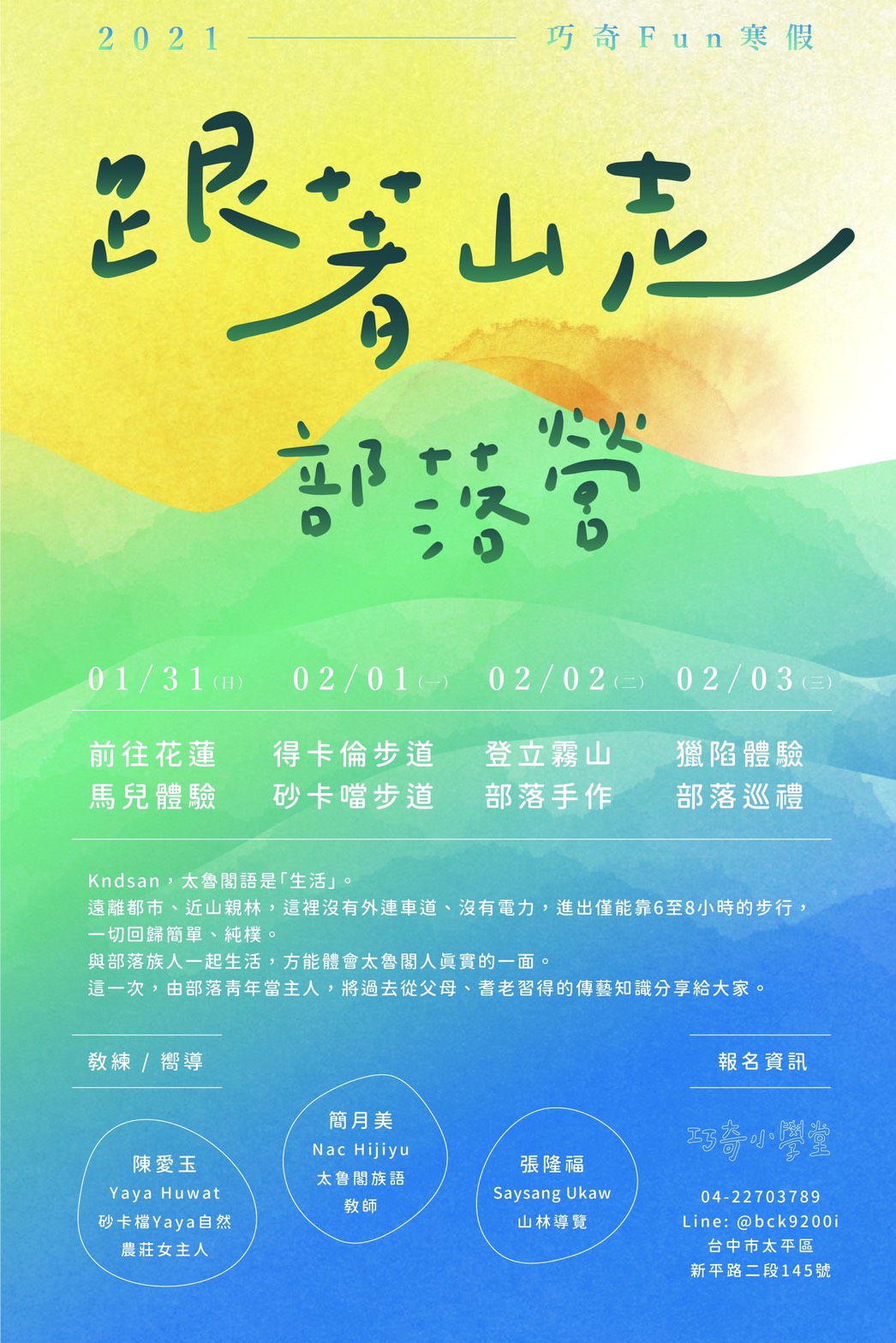 活動日期:1/31(日)-2/3(三) 四天三夜(沒有網路,只有蟲鳴、溪流和整片山)