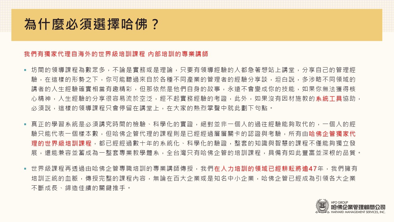 哈佛企業管理顧問_台北教室
