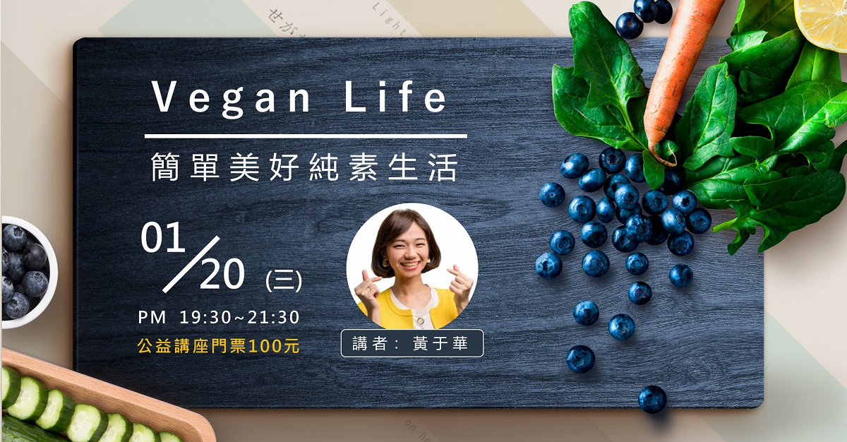 1月的公益講座,特別邀請純素生活推廣大使 于華來和大家分享,她的純素生活主義,如何帶給她快樂與幸福的人生!