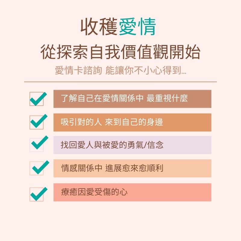 💟諮詢過程中,透過牌卡和對談,Ekiko會陪伴你釐清自己「必備條件」和「不能忍受條件」,也會陪同你整理出屬於你自己的「擇偶規劃表」📝