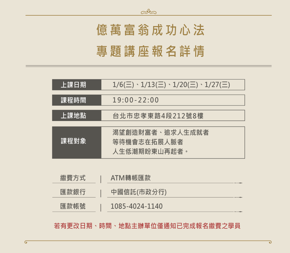 億萬富翁成功心法專題講座