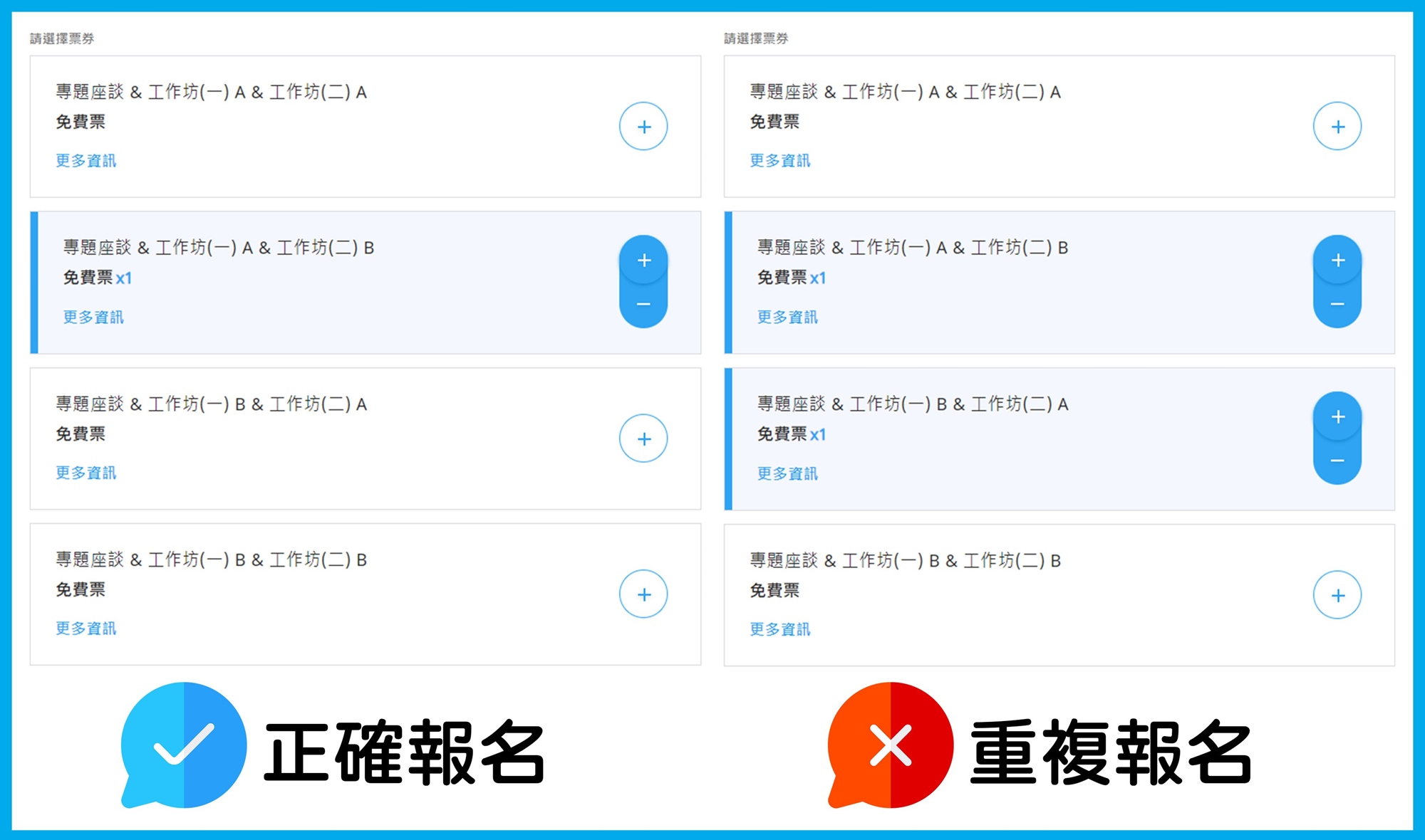 名額有限,請勿重複報名。若重複報名者,主辦單位將只採計最新報名票券。