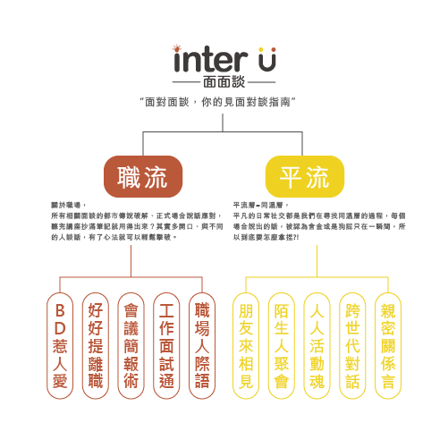 一是職流,講述關於職場、正式場合的各種面談技巧與心法;