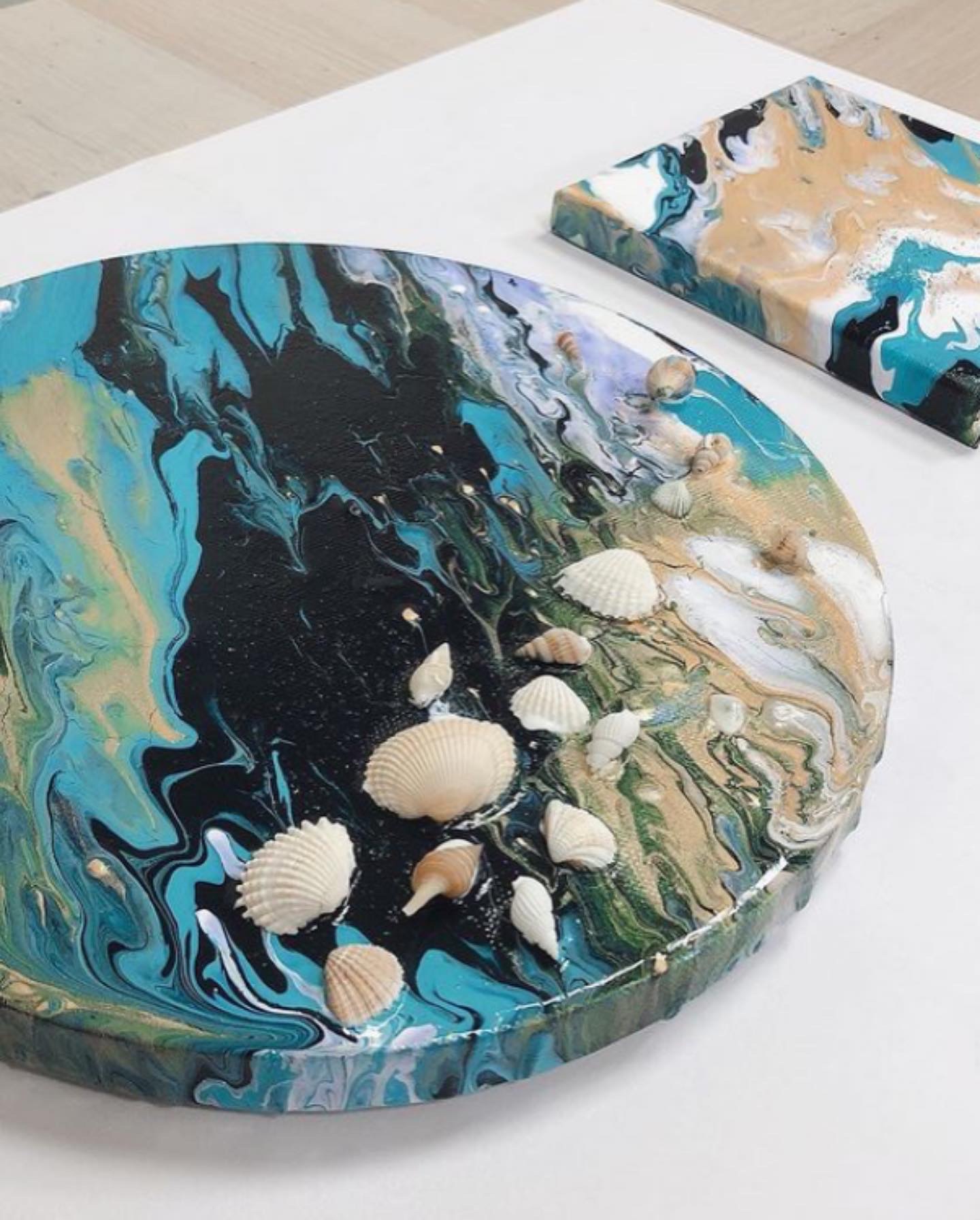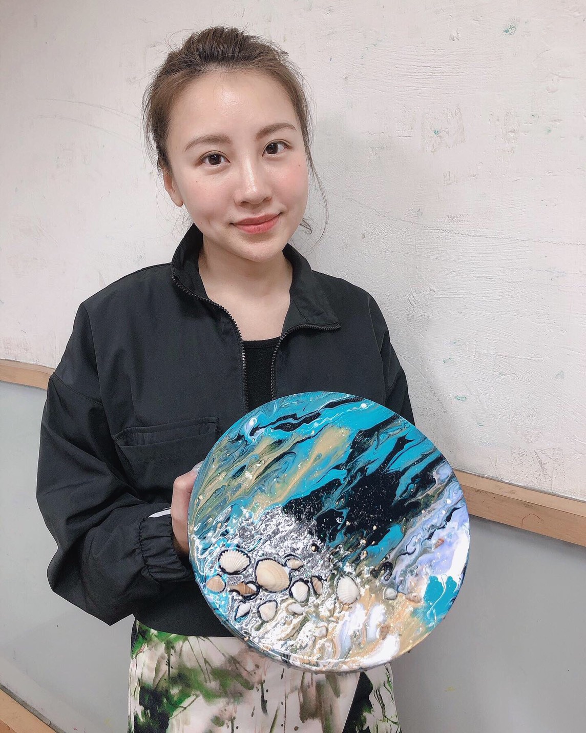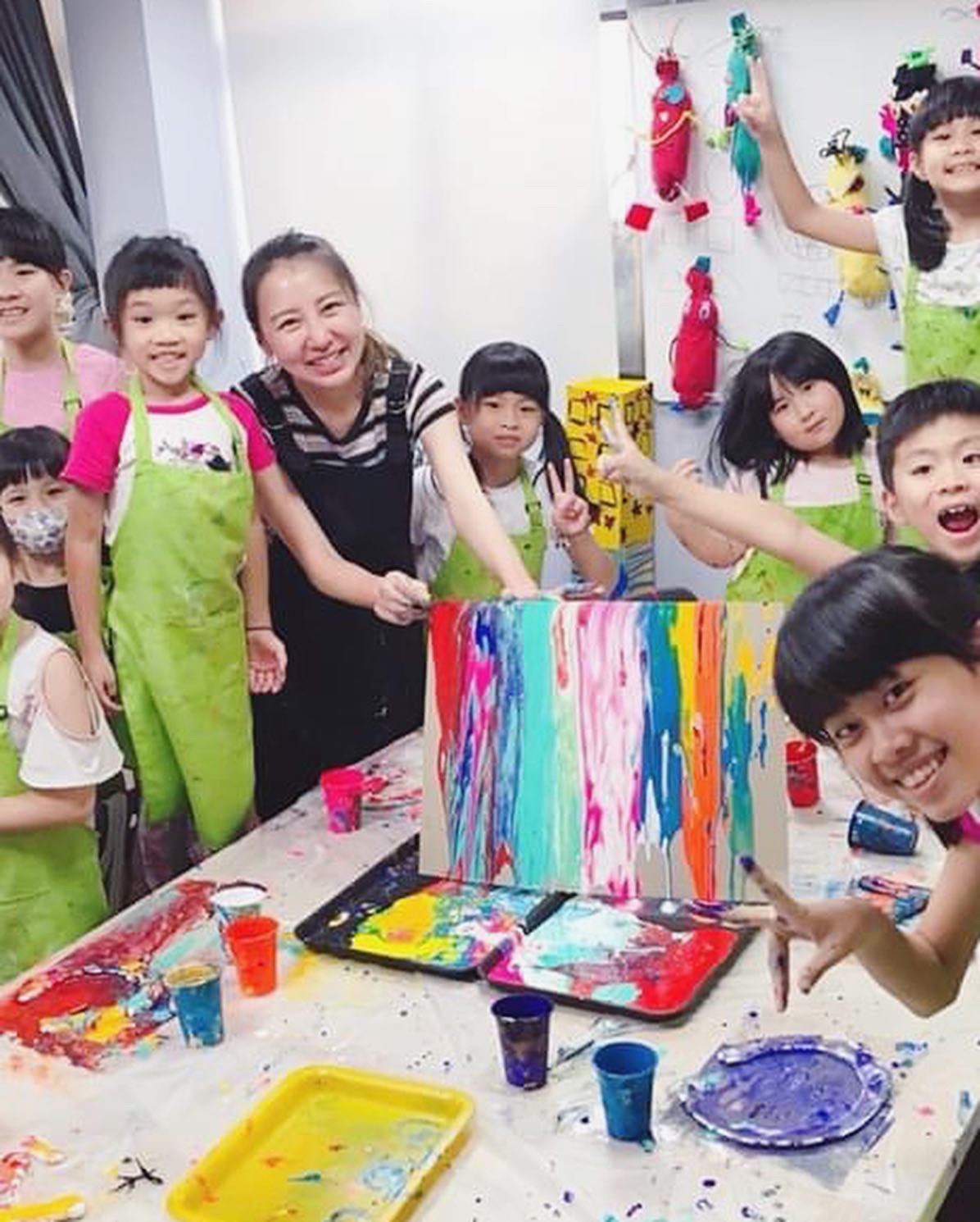 不需要繪畫基礎,不需要畫筆,只要發揮想像力,搭配老師給的材料,任何人都可以輕易上手出屬於自己的流體藝術