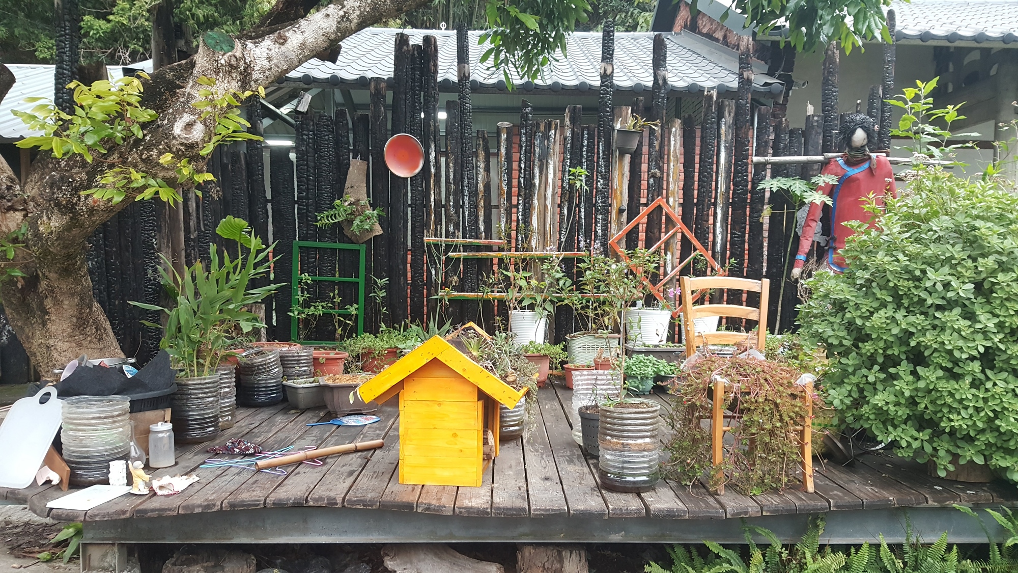 實作小花圃 : 在竹風樂境龍眼樹旁木平台建置水生池為示範點