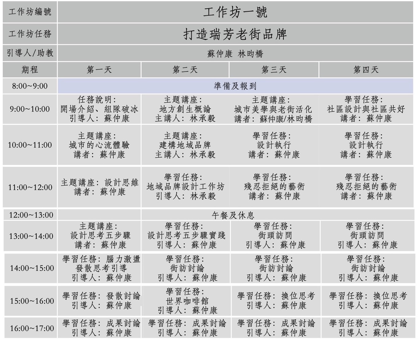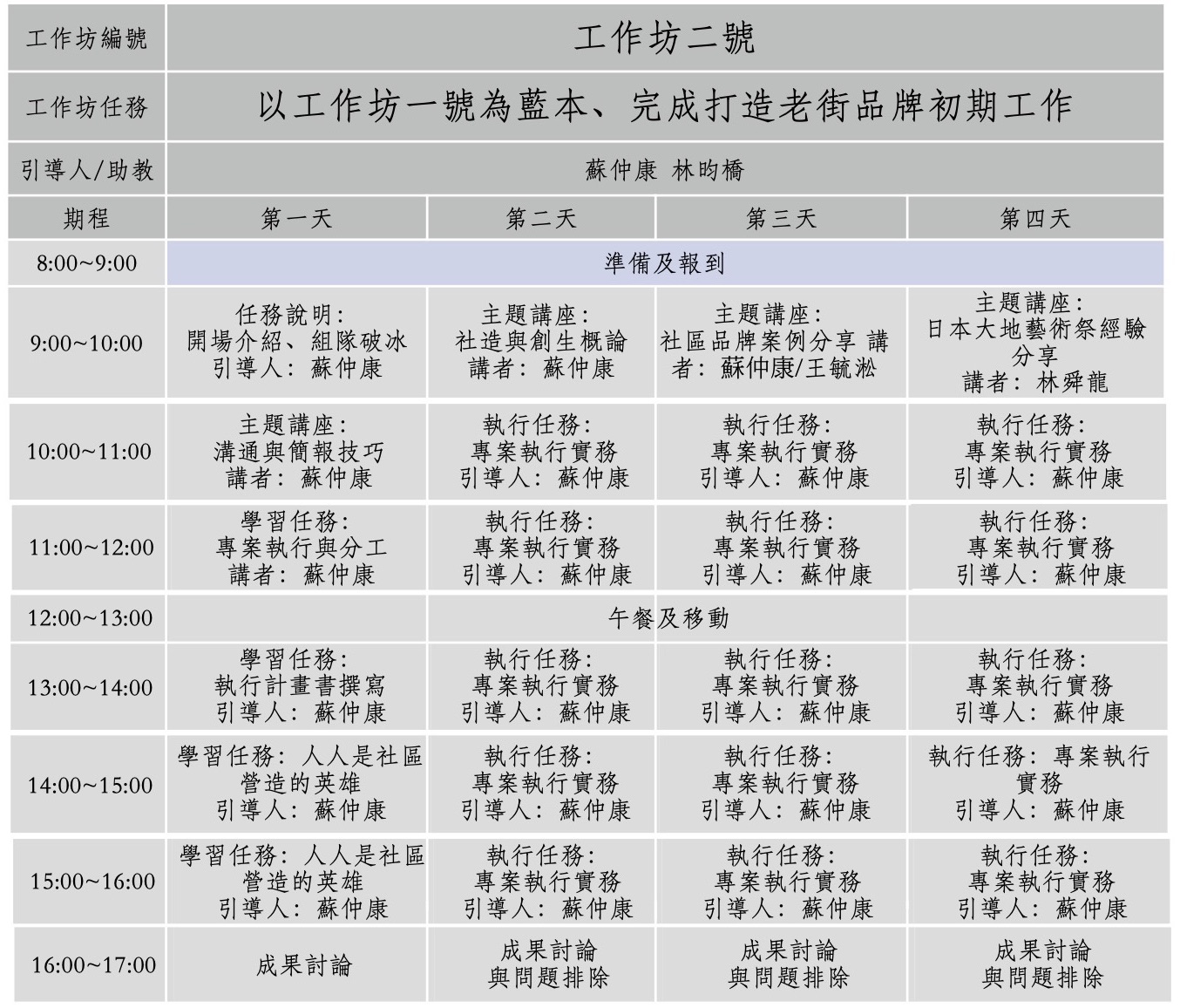 先是四天的共識型工作坊,再來是四天的實作型工作坊。