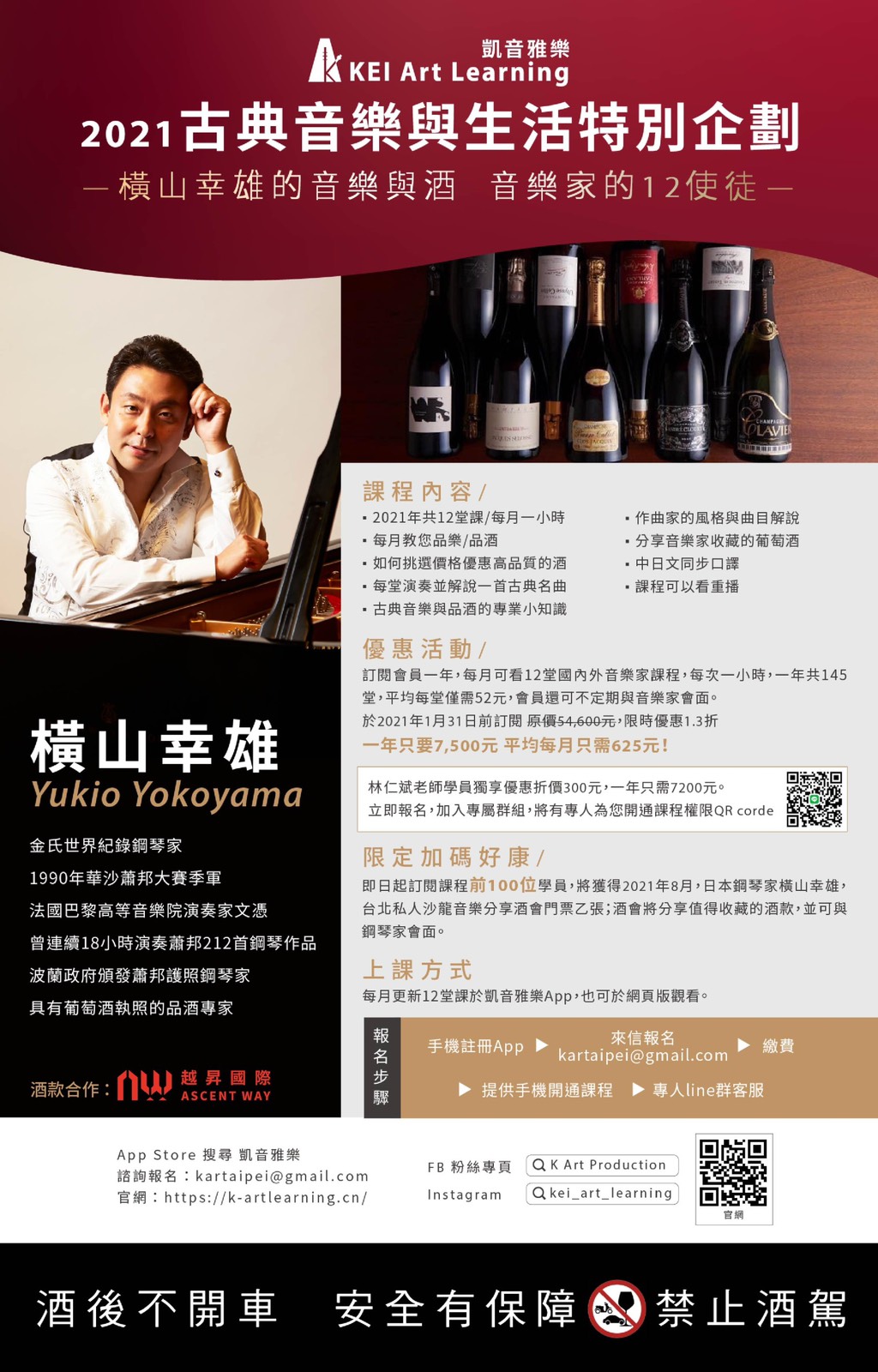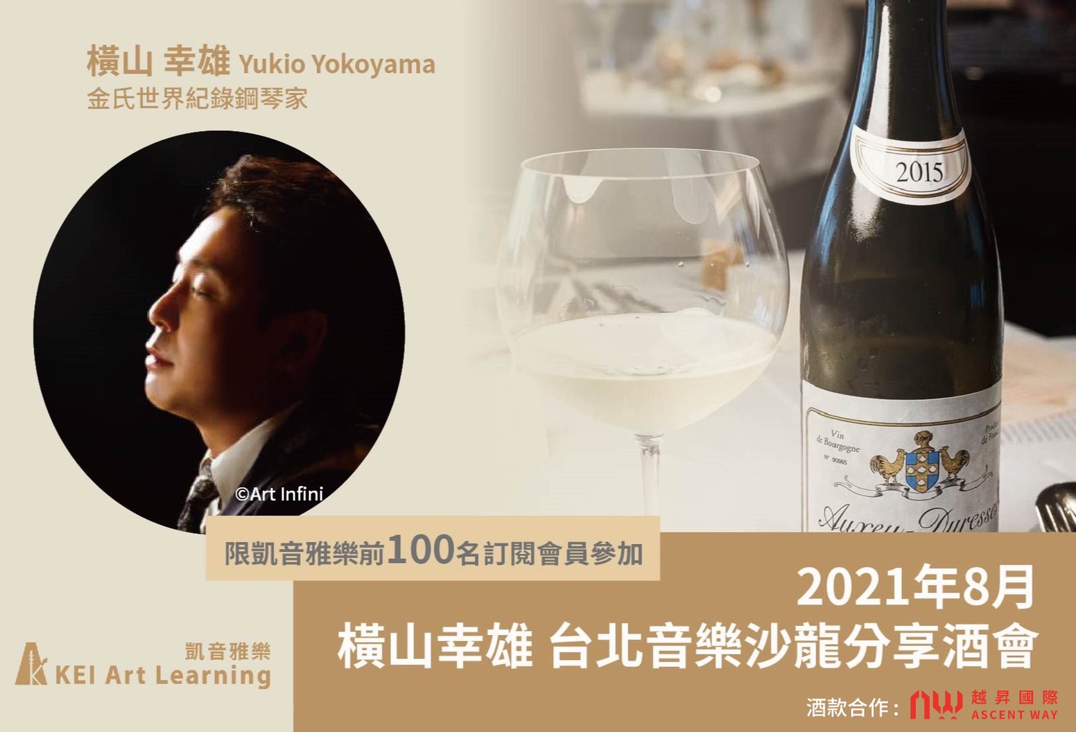 『前100名訂閱會員』將能參加2021年鋼琴家橫山幸雄台北音樂沙龍分享酒會!