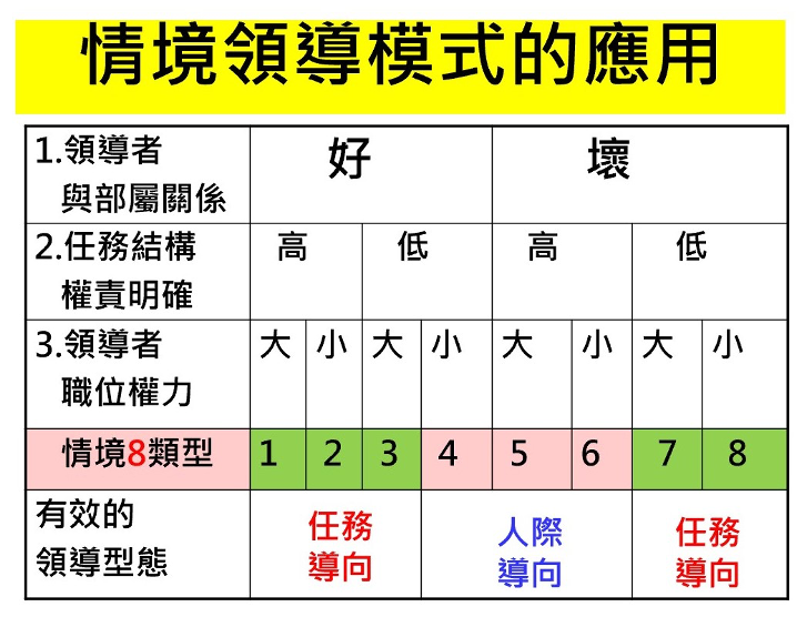 優質的領導者常依工作情境的不同而採取不一樣的領導方式