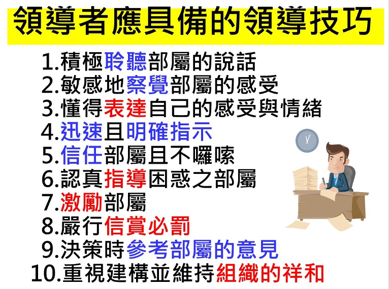 1. 瞭解領導者應有的領導角色,學習領導者應具備的領導心法及技巧