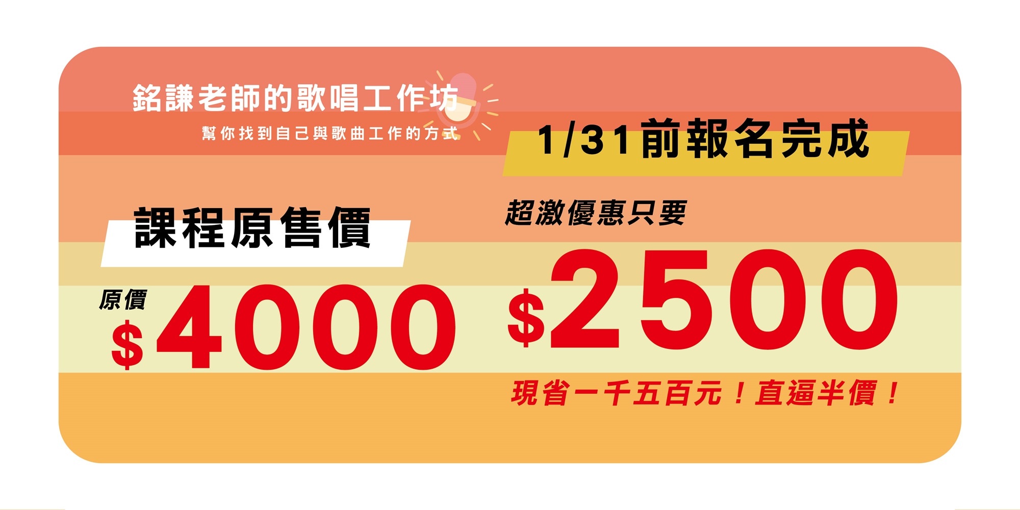 (2021/1/31前享超早鳥優惠價:2,500元)